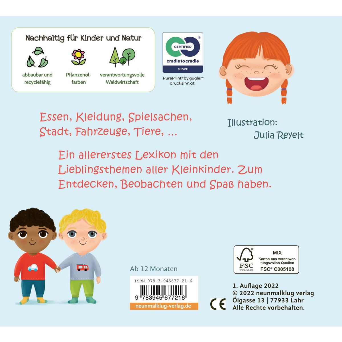 In diesem Pappbilderbuch dreht sich alles rund um die Erlebniswelt von Kleinkindern. Ob Essen, Kleidung, Stadt, Fahrzeuge oder Tiere – hier wird kein Lieblingsthema der Kleinsten ausgelassen.