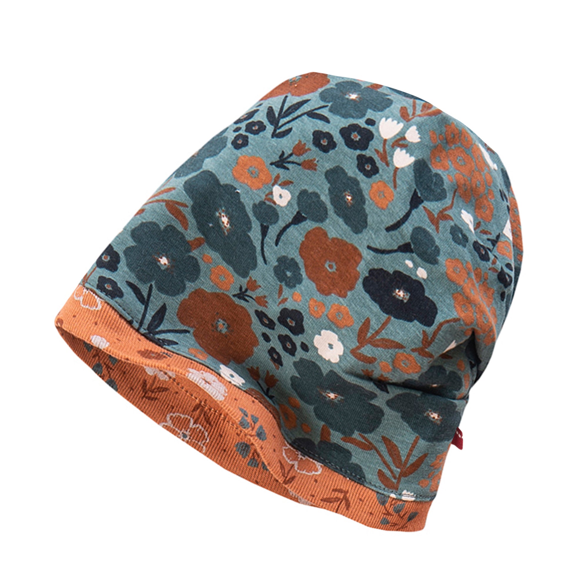 People wear organic Kinder Strick-Mütze kastanienbraun floral gemustert