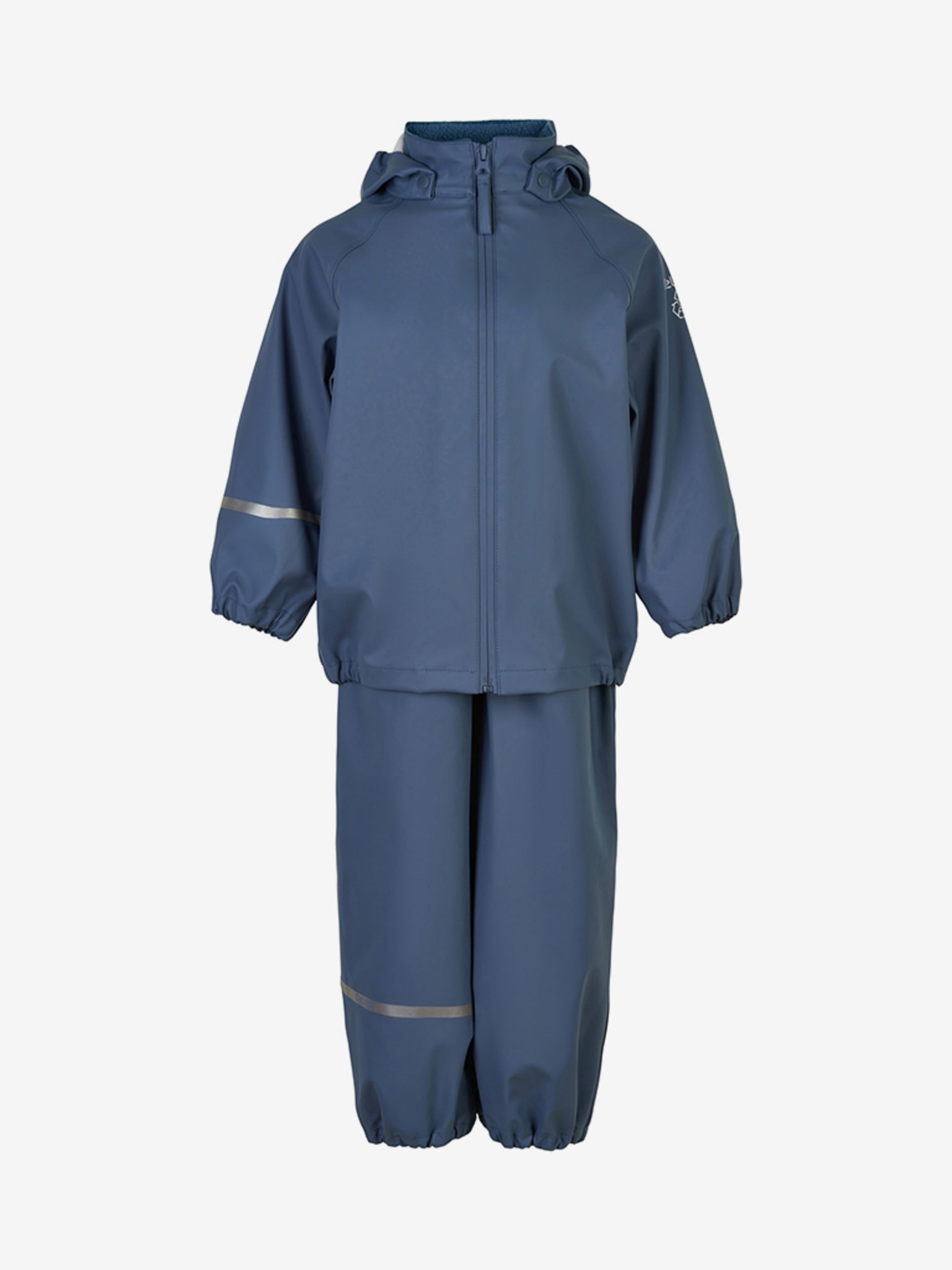 Exklusive und umweltfreundliche PU-Regenbekleidung aus recyceltem Kunststoff. Mit dieser Regenbekleidung tragen Sie dazu bei, die Verschmutzung von Luft, Wasser und Boden zu reduzieren. Die Regenbekleidung ist von weicher und langlebiger Qualität. Durch die rahmengenähten Nähte hat es eine Wassersäule von 10.000 mm und ist wasserdicht. Die Regenjacke verfügt über einen praktischen Qualitätsreißverschluss, der wasserdicht ist. Abnehmbare und praktische Kapuze. Die Jacke hat einen Gummizug am Handgelenk, an der Kapuze und an der Taille, der Wasser und Luft fernhält. Reflexe an einem Ärmel, Bein und Reflexlogo an Ärmel, Kapuze und Bein. Diese Reflexe machen Ihr Kind im Dunkeln besser sichtbar. Die Regenhose in der Größe 70-100 hat verstellbare elastische Hosenträger und Druckknöpfe an jeder Seite. In der Übergangszeit kann es praktisch sein, unter der Regenbekleidung Thermokleidung zu tragen, für die genügend Platz vorhanden ist. Alle Größen verfügen über verstellbare elastische Fußschlaufen, die die Regenhose beim Herumspringen im Wasser eng an den Gummistiefeln halten. Möchten Sie wie CeLaVi einen größeren Fokus auf die Zukunft und die Umwelt unserer Kinder legen, dann ist diese Regenbekleidung praktisch und umweltfreundlich.