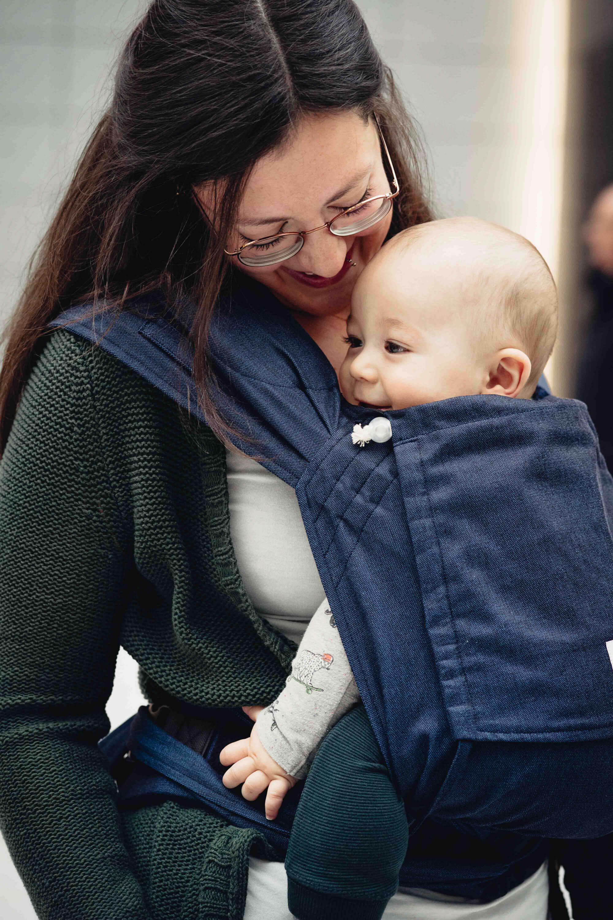Die LIMAS Babytrage ist eine Kombination zwischen Tragetuch und Komforttrage und komplett aus Bio-Tragetuchstoff genäht.