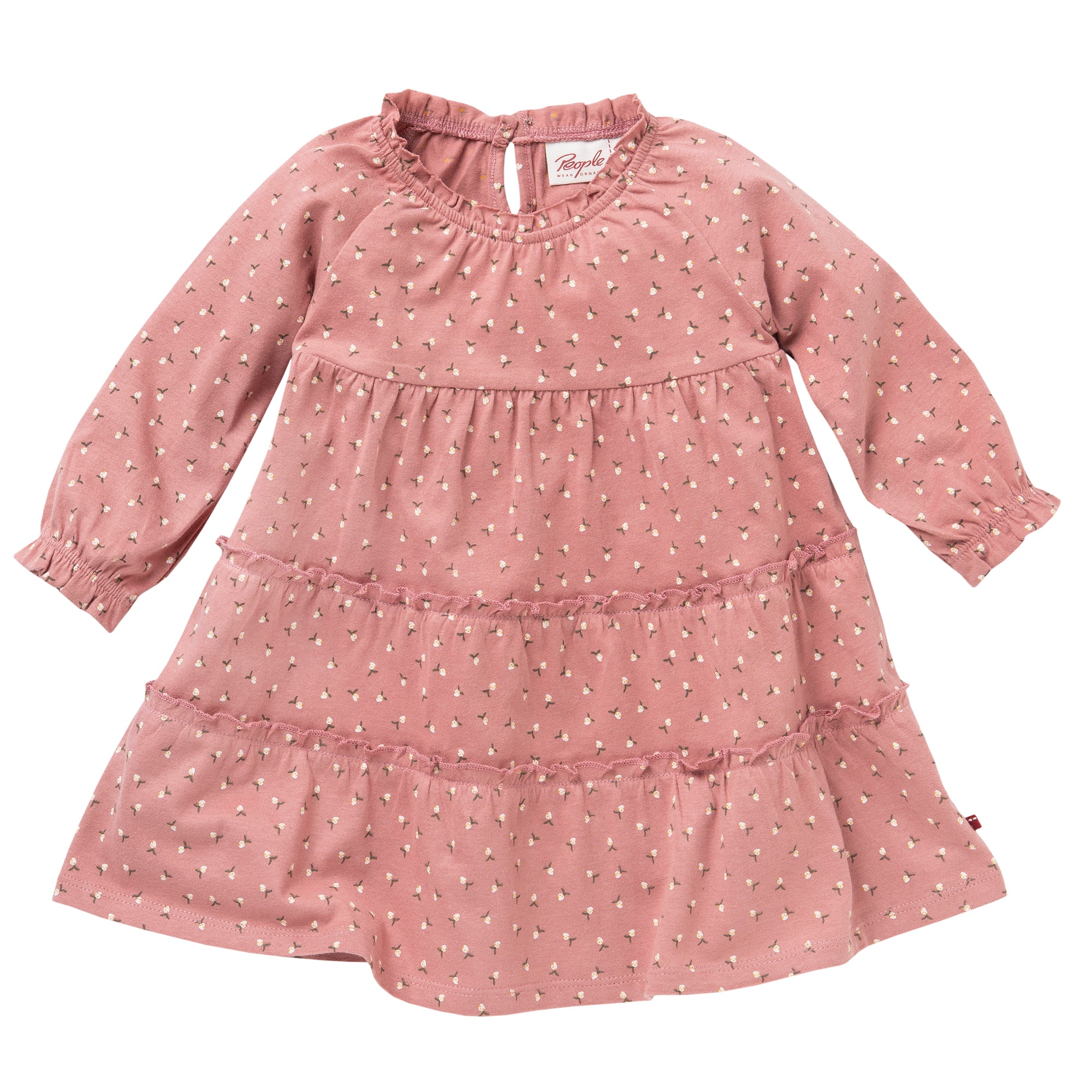 Das gerüschte Stufenkleid im modernen Design und detailverliebtem All-over Print mit zarten Beeren ist aus 100% Bio Baumwolle. Es hat einen Knopf im Nackenbereich mit tropfenförmigem Ausschnit für leichteres An- und Ausziehen.