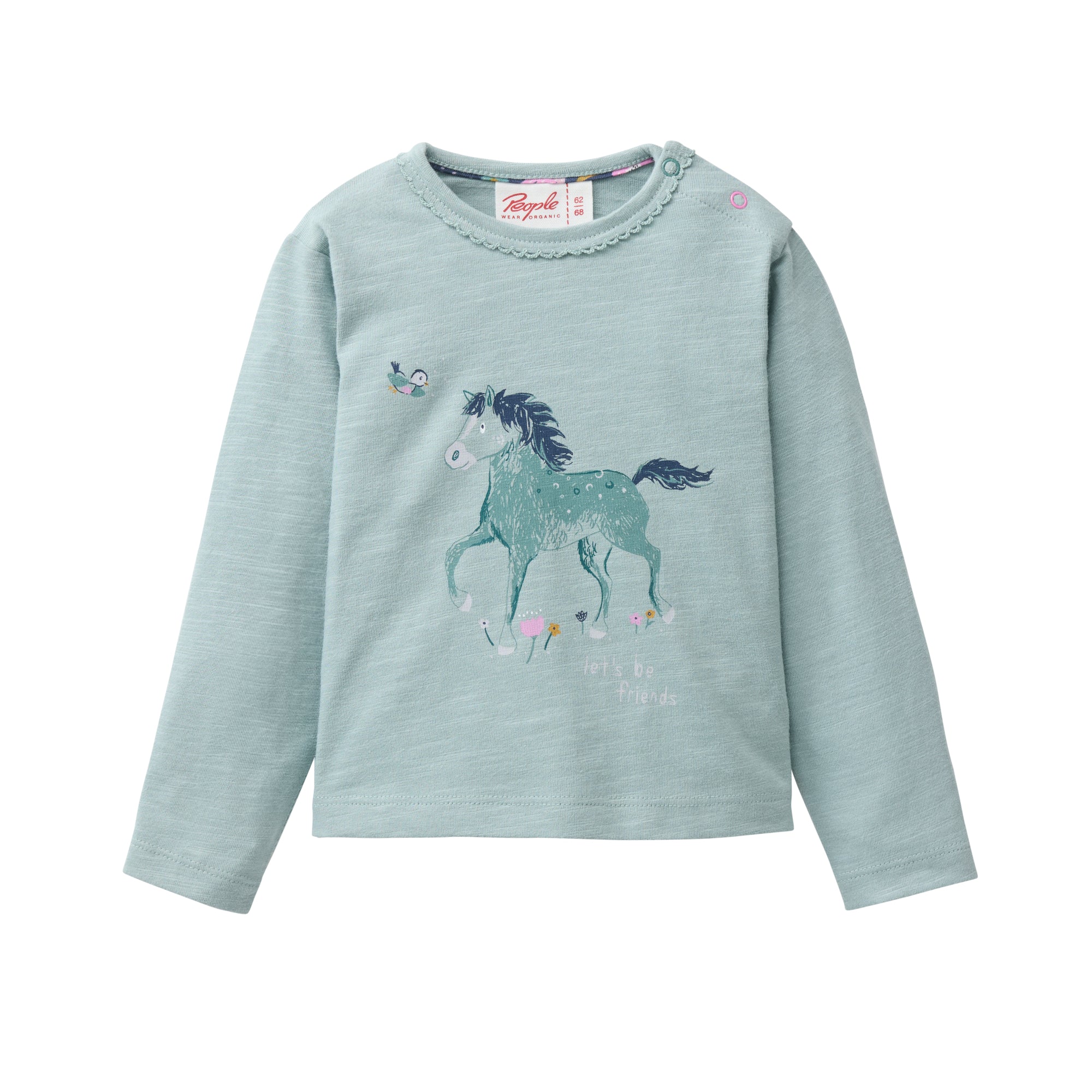 "Let's be friends" sagt der Vogel zum Pferd und schon sausen die beiden wie der Wind davon, um die Welt zu entdecken und Abenteuer zu erleben. Liebevoll gezeichneter Print auf wunderbar weicher Bio-Baumwolle. Eine unschlagbare Kombi.