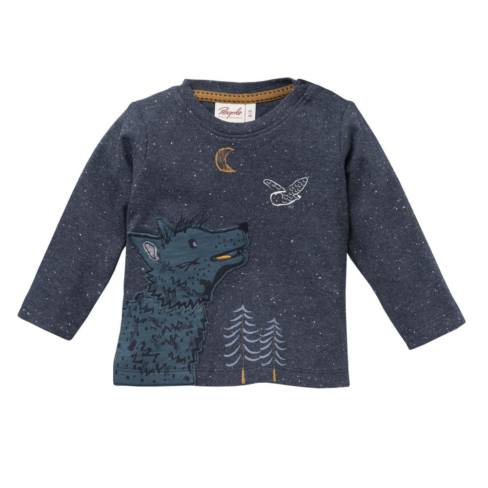 People wear organic Langarmshirt mit Wolf Aufnäher dunkelblau meliert