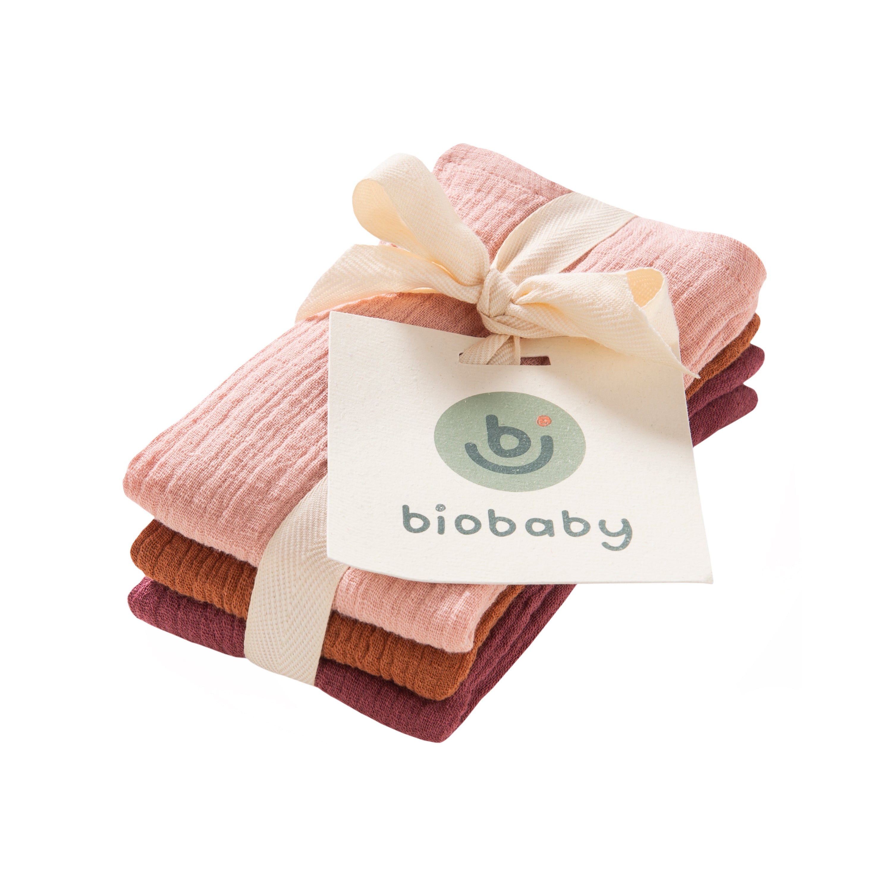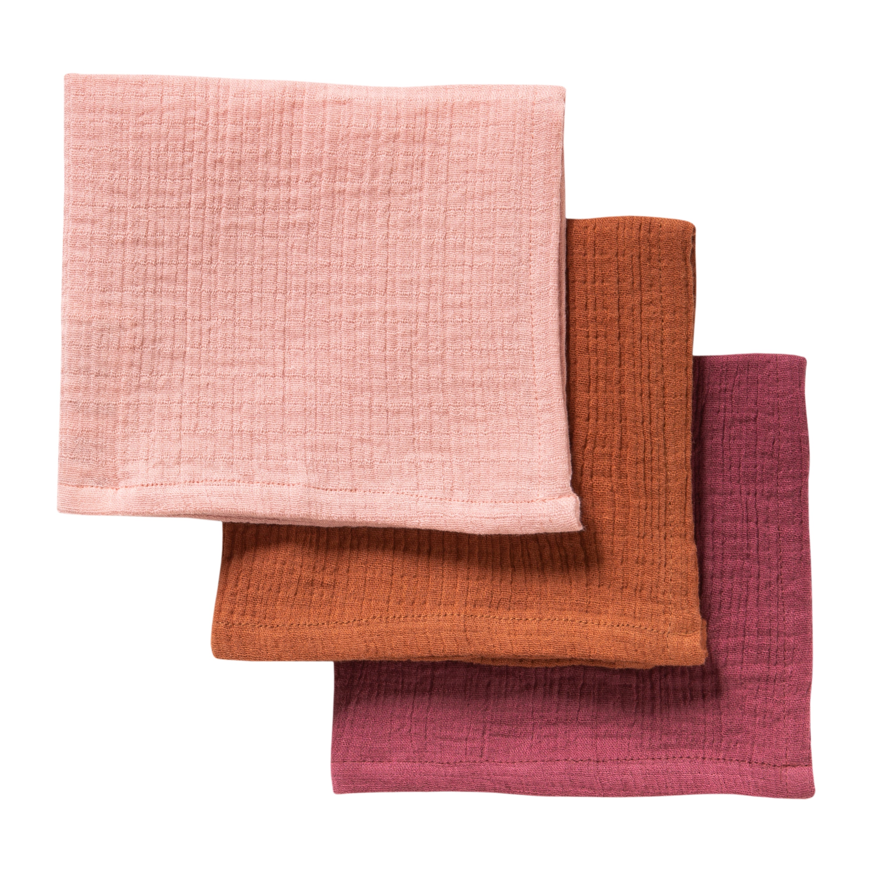 Mull-Waschlappen Set in den Farben bordeaux, zimt, rosé aus zertifizierter Bio-Baumwolle