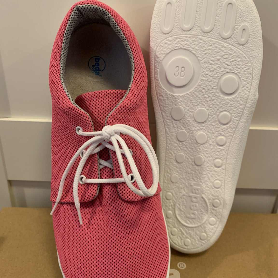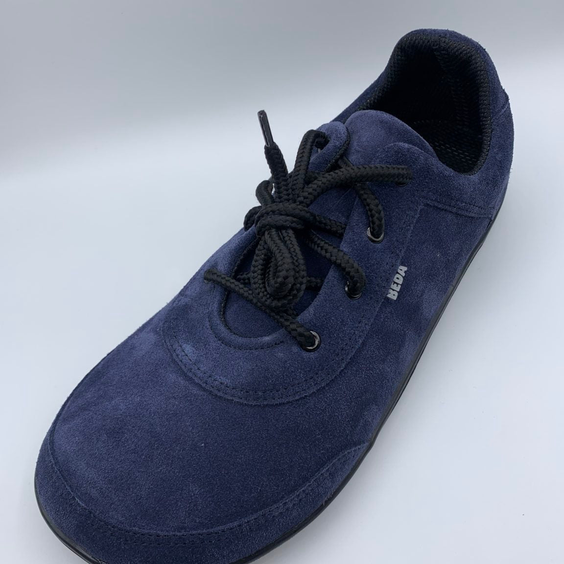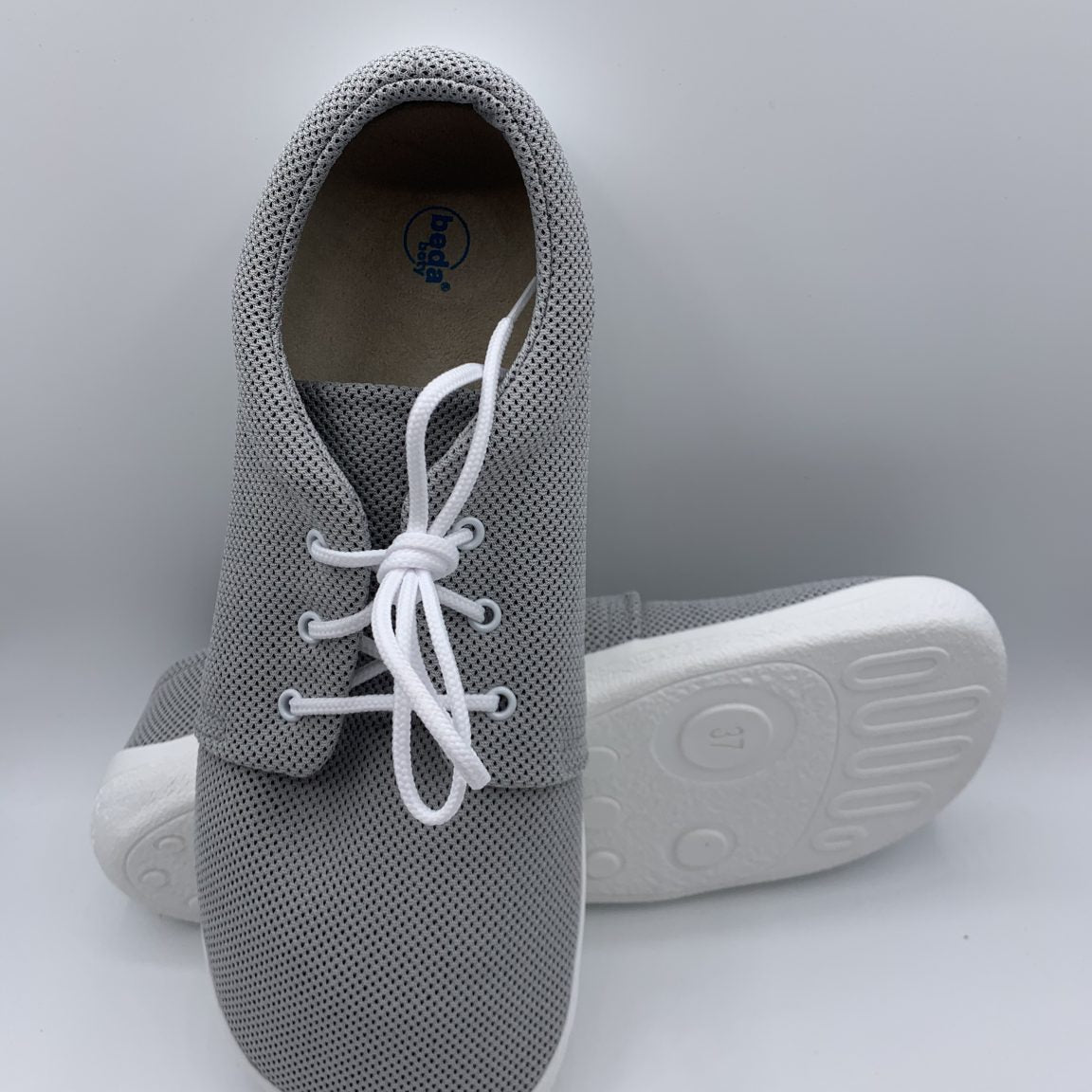 Ein Barfußschuh muss mindestens 1,2cm länger sein als die reine Fußlänge. Für wachsende Füße empfehlen wir einen Schuh auszusuchen, der 1,5-1,7cm länger ist. In der Breite müssen 2-6mm addiert werden. Die Passform an der Ferse, Fessel und am Spann spielen allerdings auch eine große Rolle.