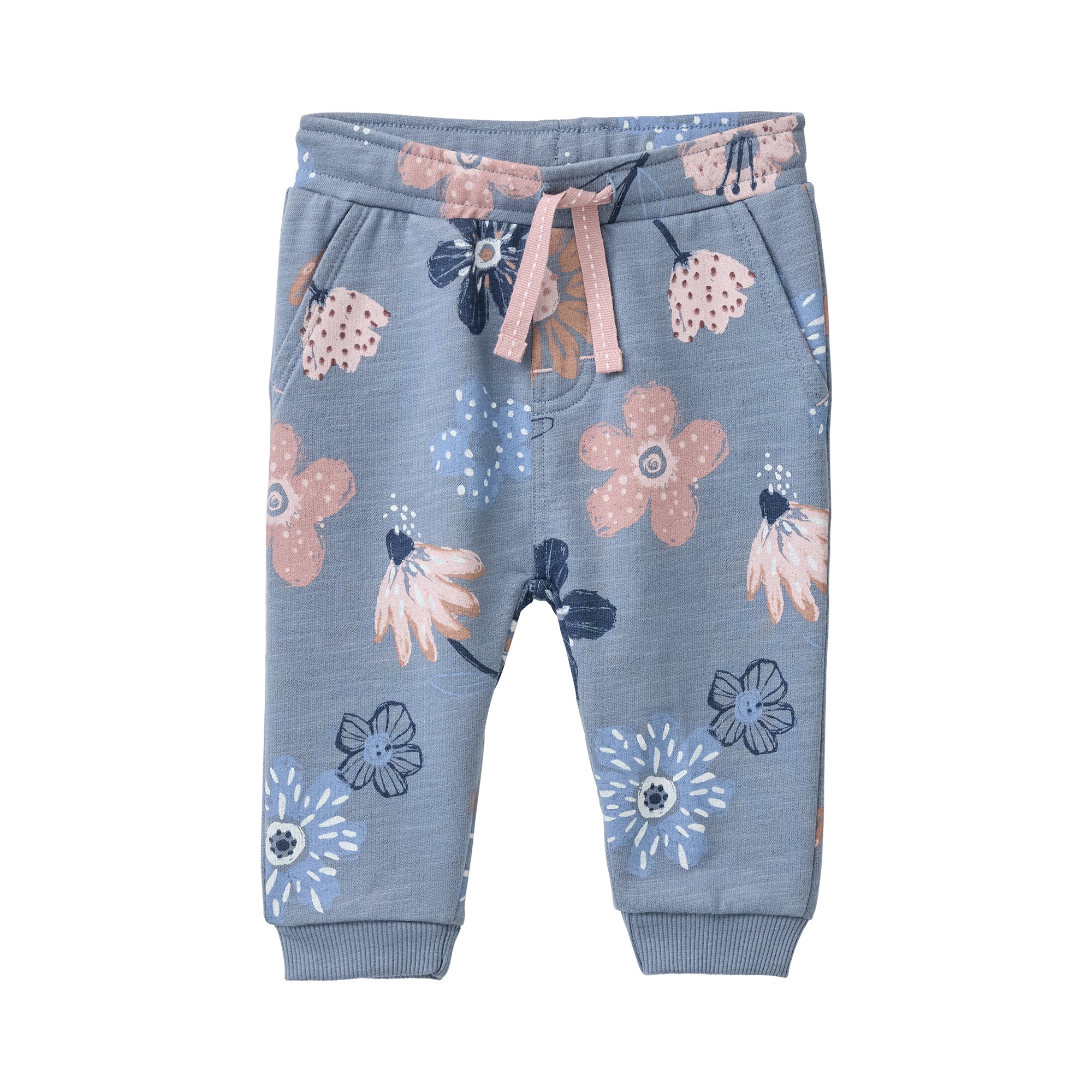 People wear organic Sweat-Hose - rauchblau AOP große Herbstblumen