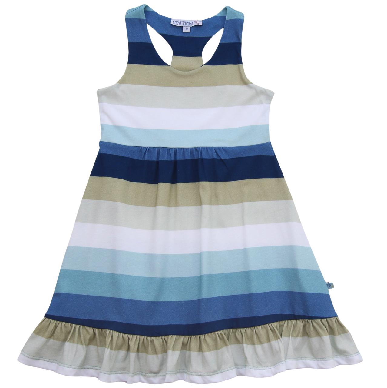 Summer Feelings! Gestreiftes Jerseykleid in harmonischen Blautönen aus super weicher und anschmiegsamer Bio Baumwolle.