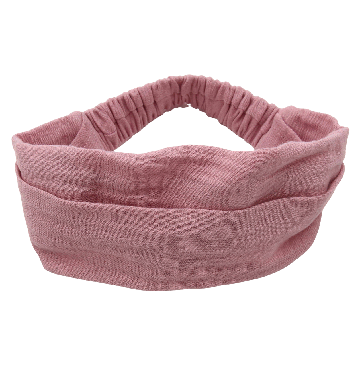 Modisch schick und praktisch! Leichtes Musselin Haarband aus super weicher und anschmiegsamer Bio Baumwolle in der Farbe rosa.