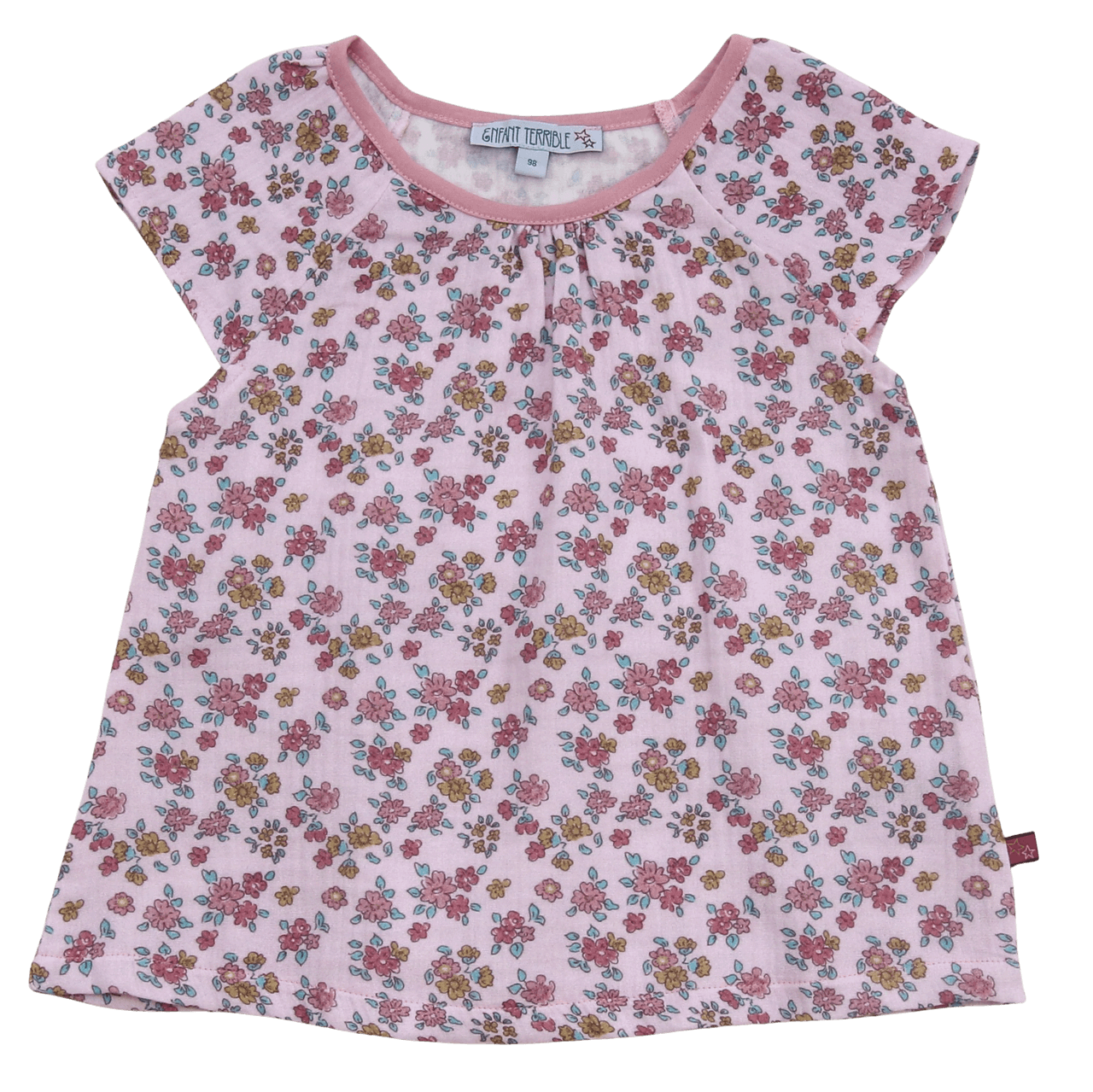 Luftiges Musselin Top in zartem rosa und mit schönem Miniblümchendruck in ockergelb.