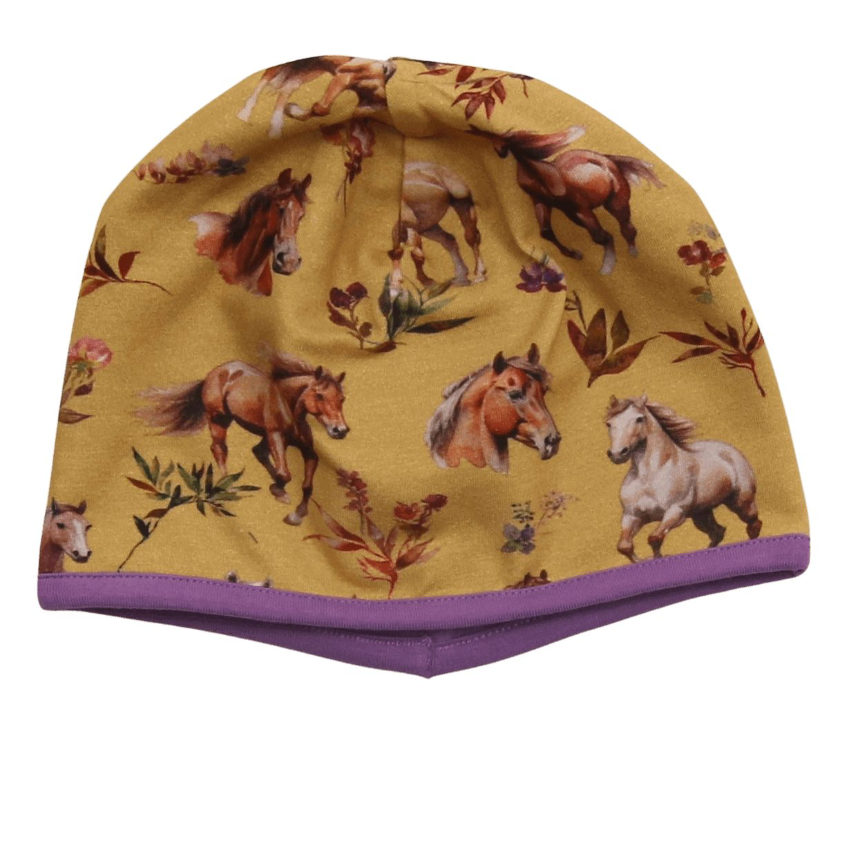 Enfant Terrible Wende Mütze - Pferdedruck curry-violet