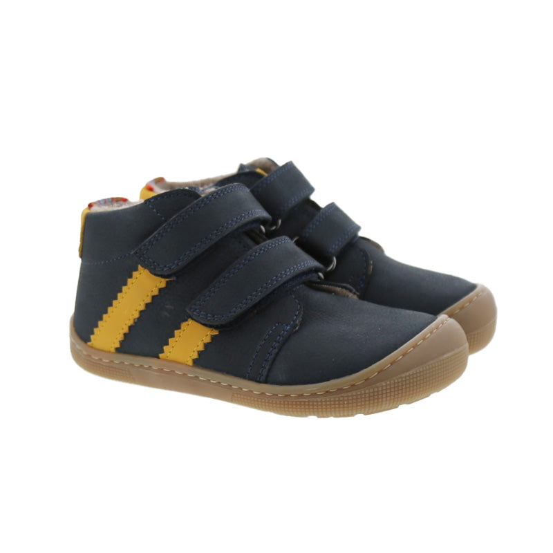 Diese Klettschuhe sind aus wasserabweisendem Bio Leder und von innen mit Merino Wollfilz gefüttert. Diese Barfußschuhe haben eine schön dünne und flexible Minimalsohle mit Profil.