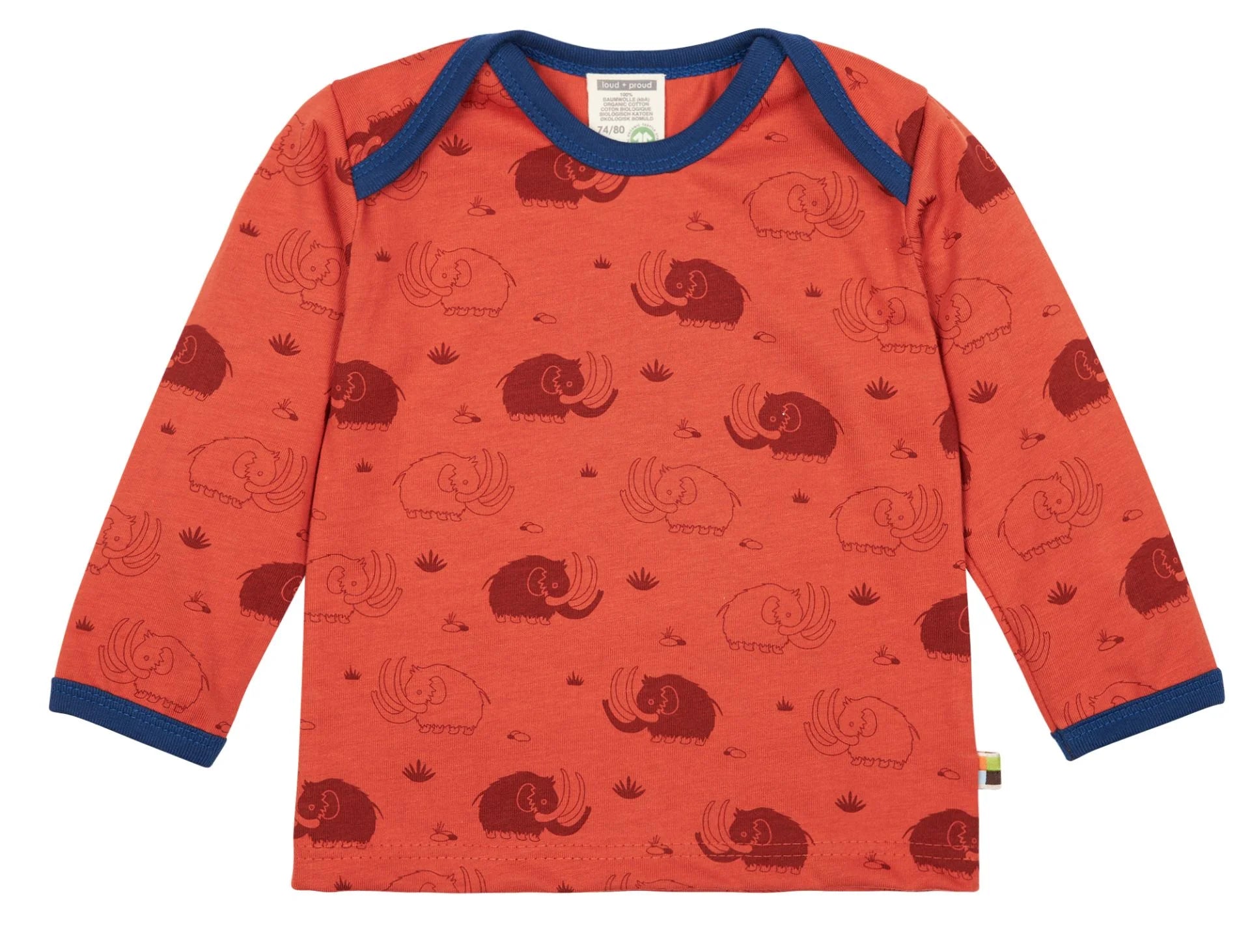 Shirt aus weichem Jersey mit ganzflächigem Druck. Das Halsloch und die Ärmelbündchen sind in Kontrastfarbe eingefasst. Bis Größe 86/92 weit zu öffnendes Halsloch, ab Größe 98/104 Rundhals-Ausschnitt. Fähnchen an der Seitennaht. Made in Hungary. Waschbar bei 30°C.
