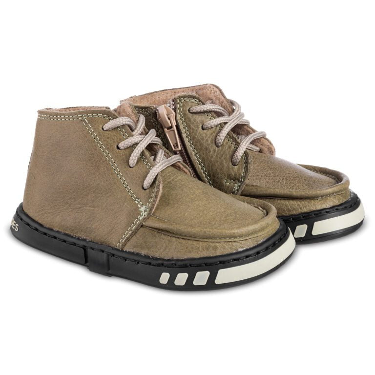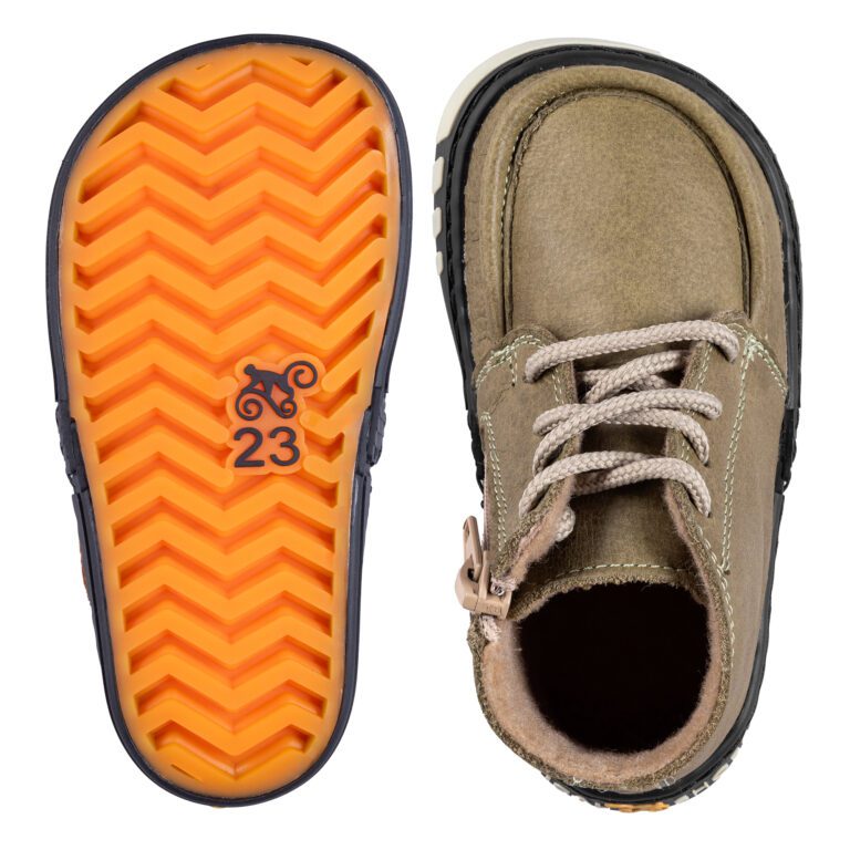 Das Wintermodell für Kinder TAKIN hat nun einen „abgespeckten“ Bruder erhalten. Das Modell MANUL, denn so wurden diese Kinder Barfußstiefel genannt, sind lässige Lederstiefeletten, die ideal für den Frühling und den Herbst sind. Im Inneren der Schuhe befindet sich ein angenehmer Filz, der bei bis zu 6 Grad Celsius einen ausgezeichneten Wärmekomfort bietet. In diesem Modell wurde eine vollkommen neue Sohle verwendet, die den Schaft vor Scheuerstellen schützt. Unsere Schuhe haben aber dadurch ihre Elastizität nicht verloren und arbeiten somit weiterhin mit den Füßen Ihres Kindes zusammen. Dies sind die perfekten Schuhe für kleine und große Ausflüge Ihres Schatzes.