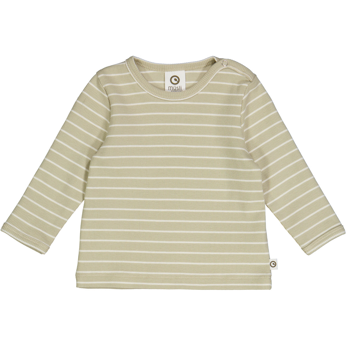 Müsli Stripe rib Langarmshirt baby Desert green / Balsam cream