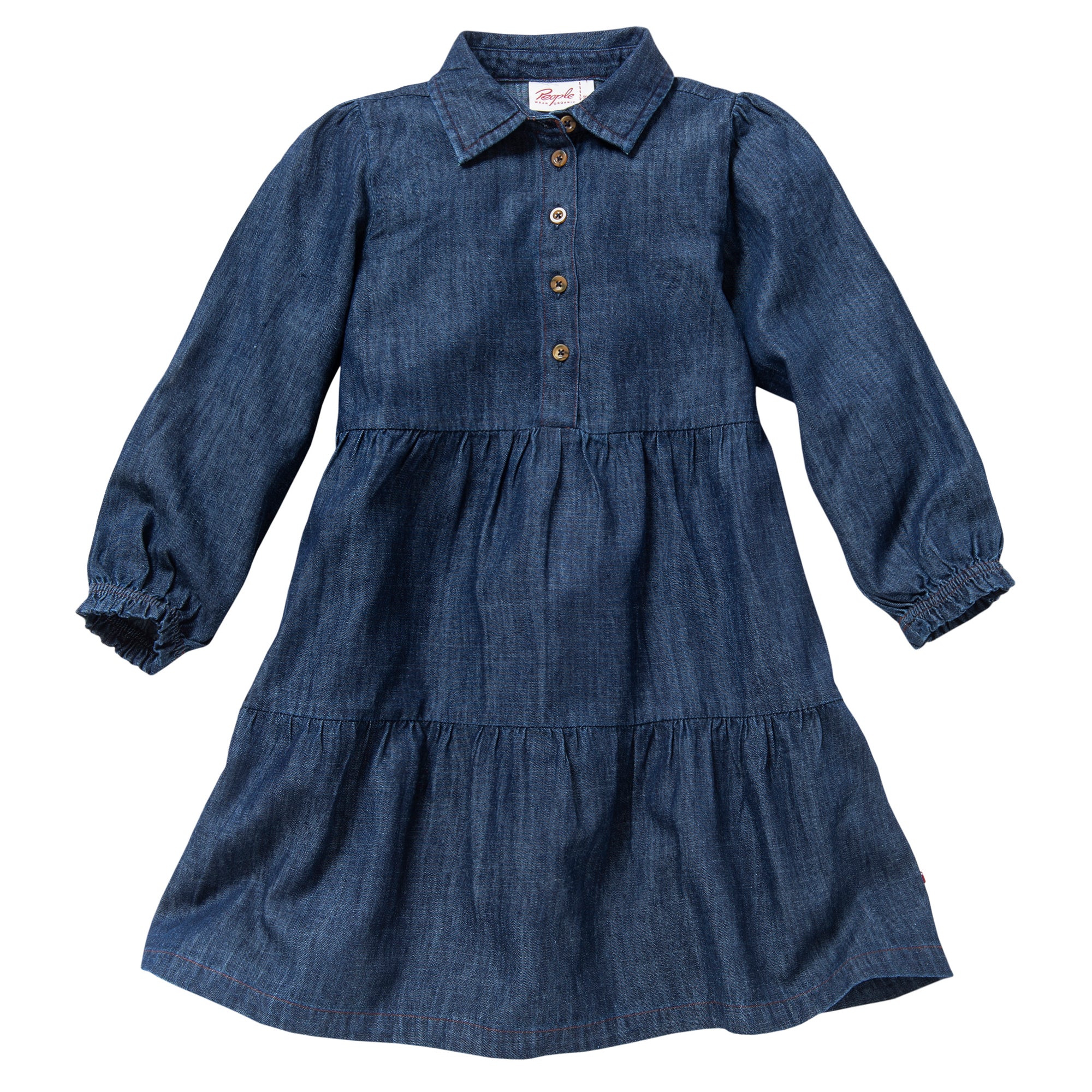 Das Jeans-Kleid ist ein Stufenkleid mit Kragen und Knopfleiste. Die Knöpfe in Hornoptik sowie die Ärmel mit Raffung an der Schulter und am Ärmelabschluss sorgen für einen coolen Look.