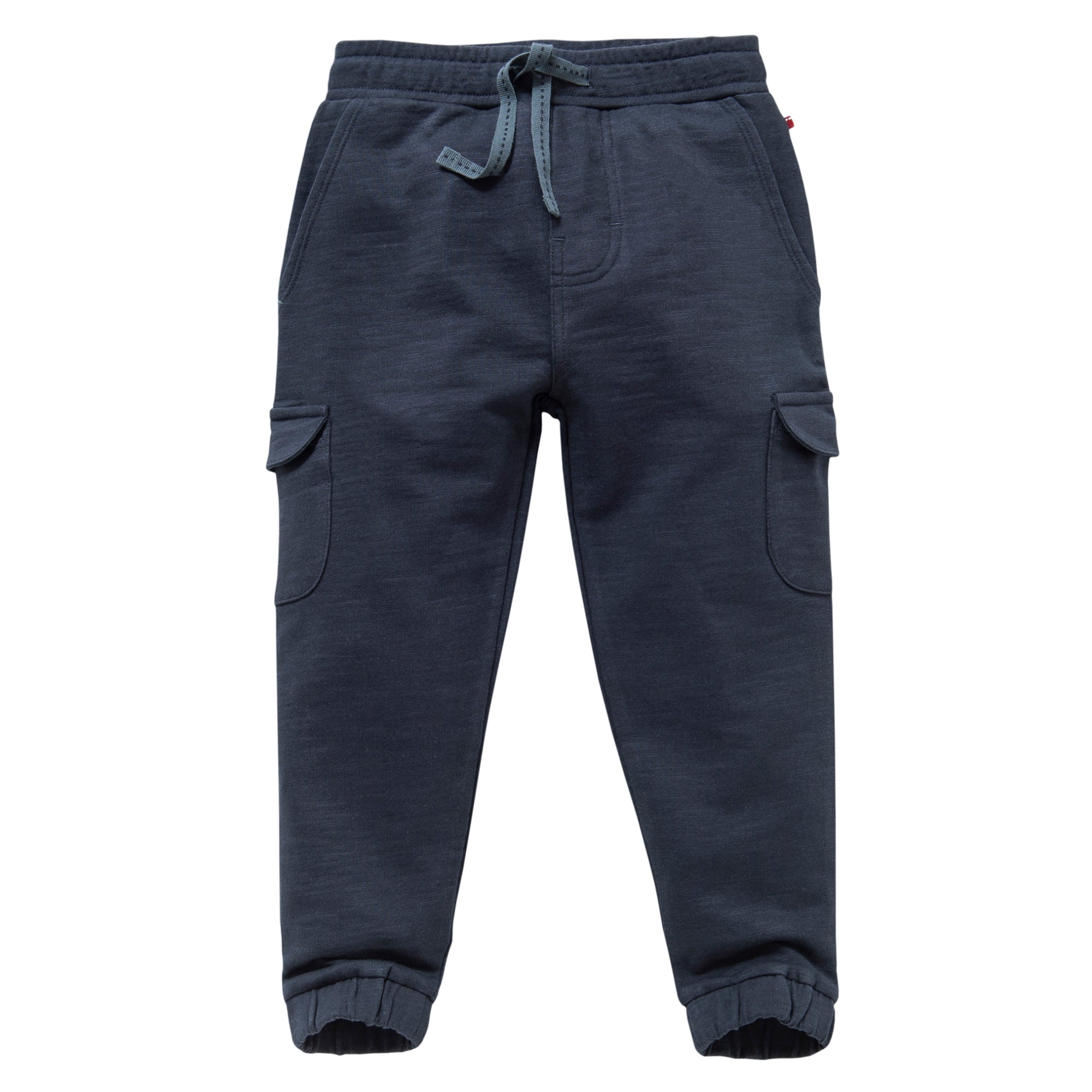 Die coole Sweat-Hose in nachtblau hat Eingriffstaschen und aufgesetzten Klappentaschen am Oberschenkel.