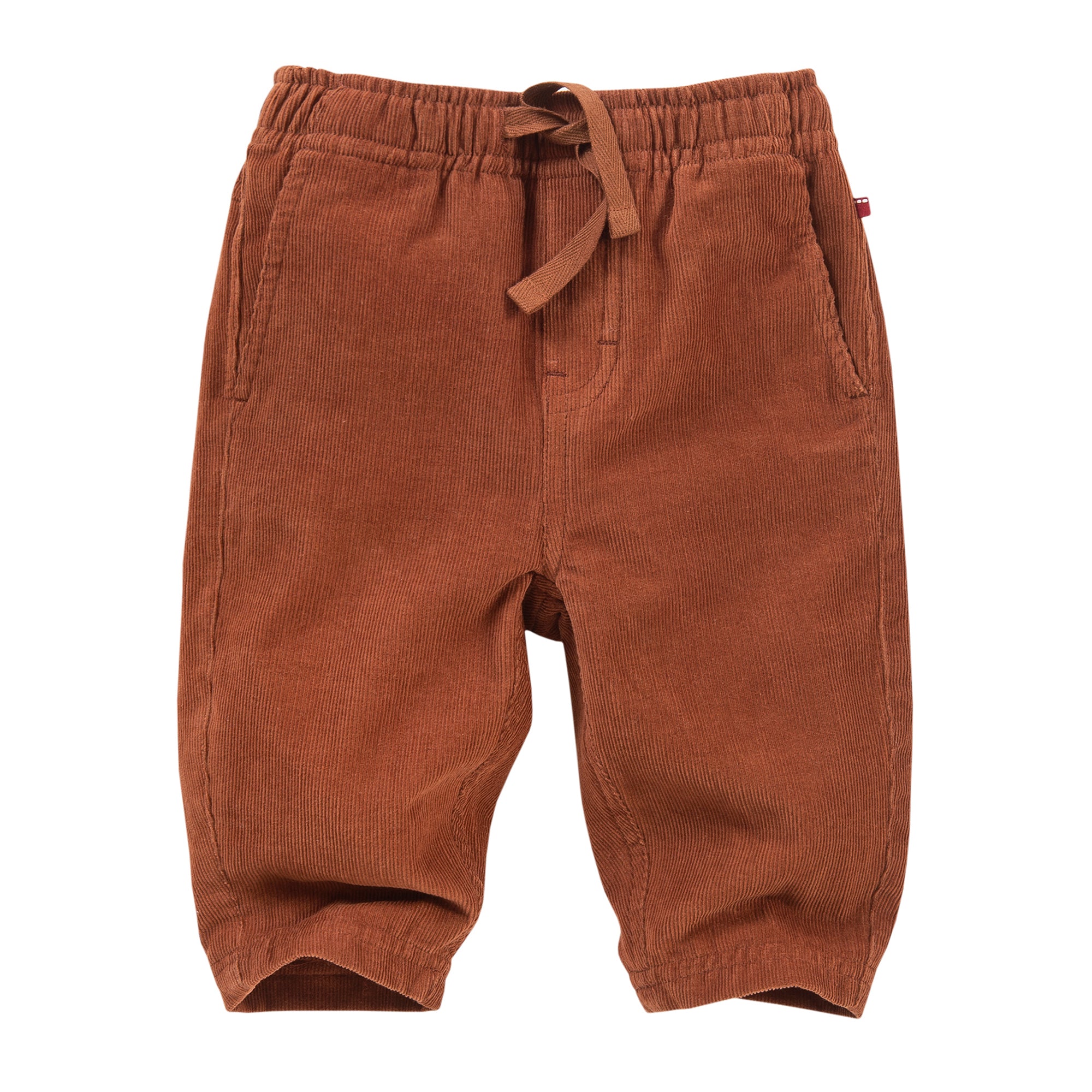 Die Kord-Hose in kastanie hat seitliche Eingriffstaschen - aufgesetzten Gesäßtaschen hinten und Passe -Bindeband zum Verstellen der Bundweite und ein durch Kappnaht angedeuteter Reißverschluss vorne.