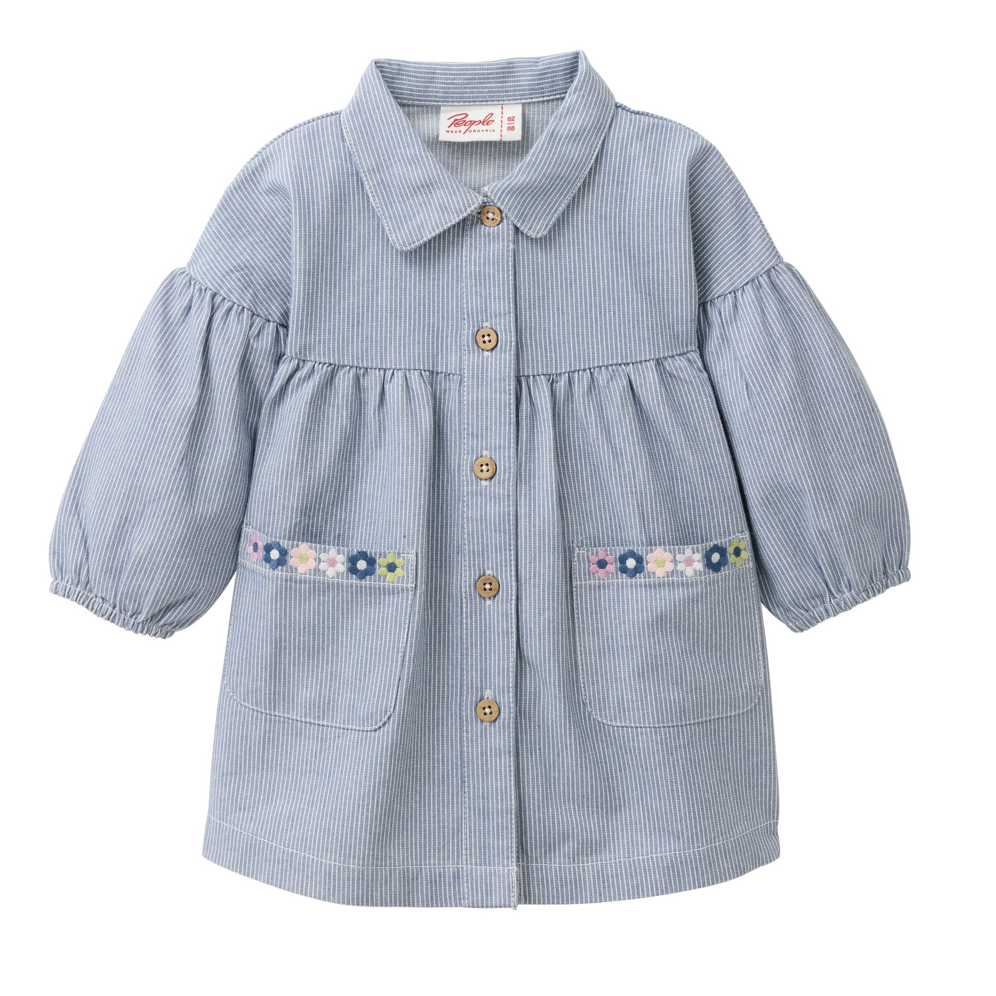 Ein Kleid perfekt für den Frühling. In dem weichen Webstreifen mit langen, angerafften Ärmeln und einhüllender O-Shape ist es noch kuschelig warm genug für die kälteren Tage während der frische Webstreifen und die fröhliche Blumenstickerei an den aufgesetzten Taschen genau die richtige Portion Sommerlaune mitbringen.