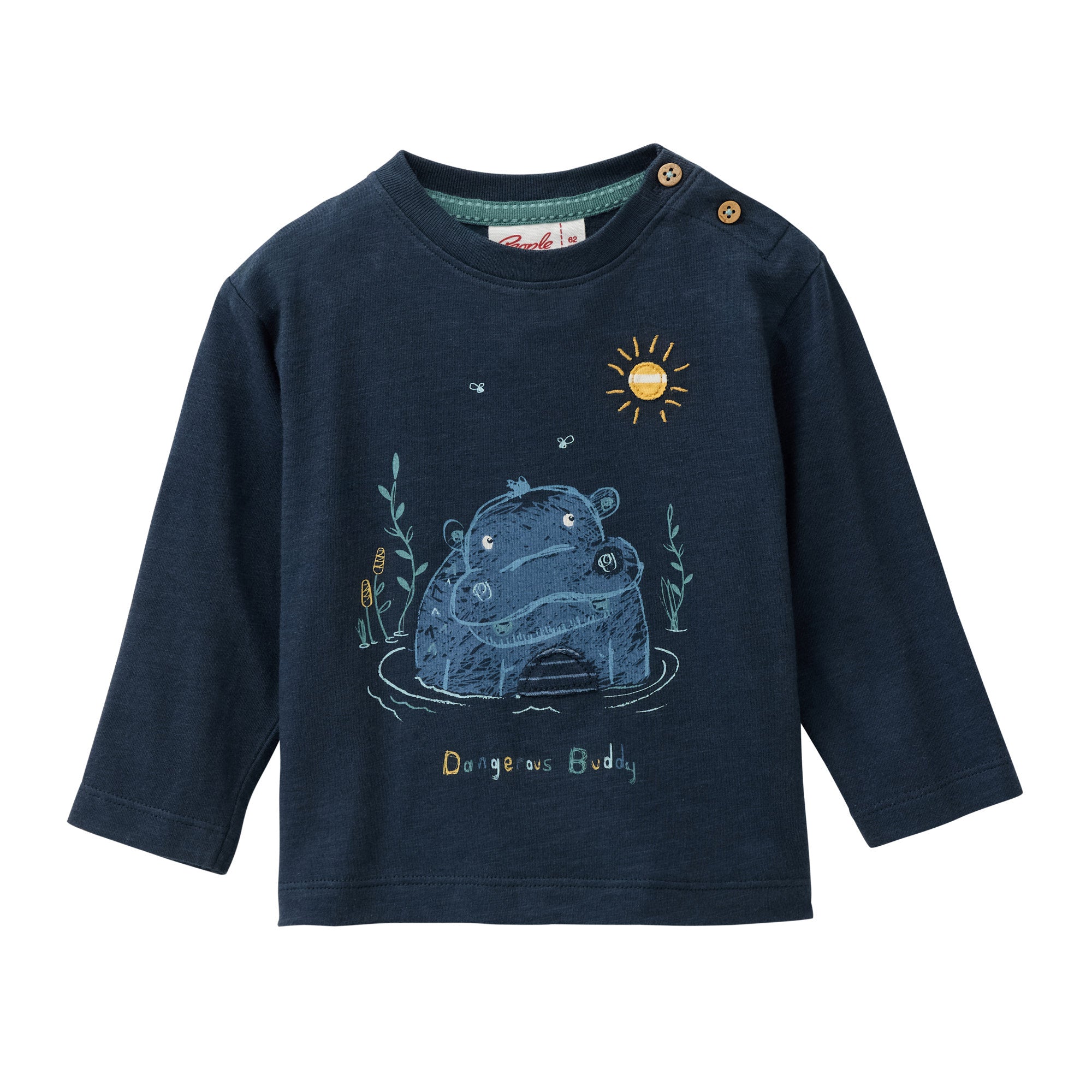 People wear organic Langarm-Shirt GOTS - dunkelblau Applikation "hippo"