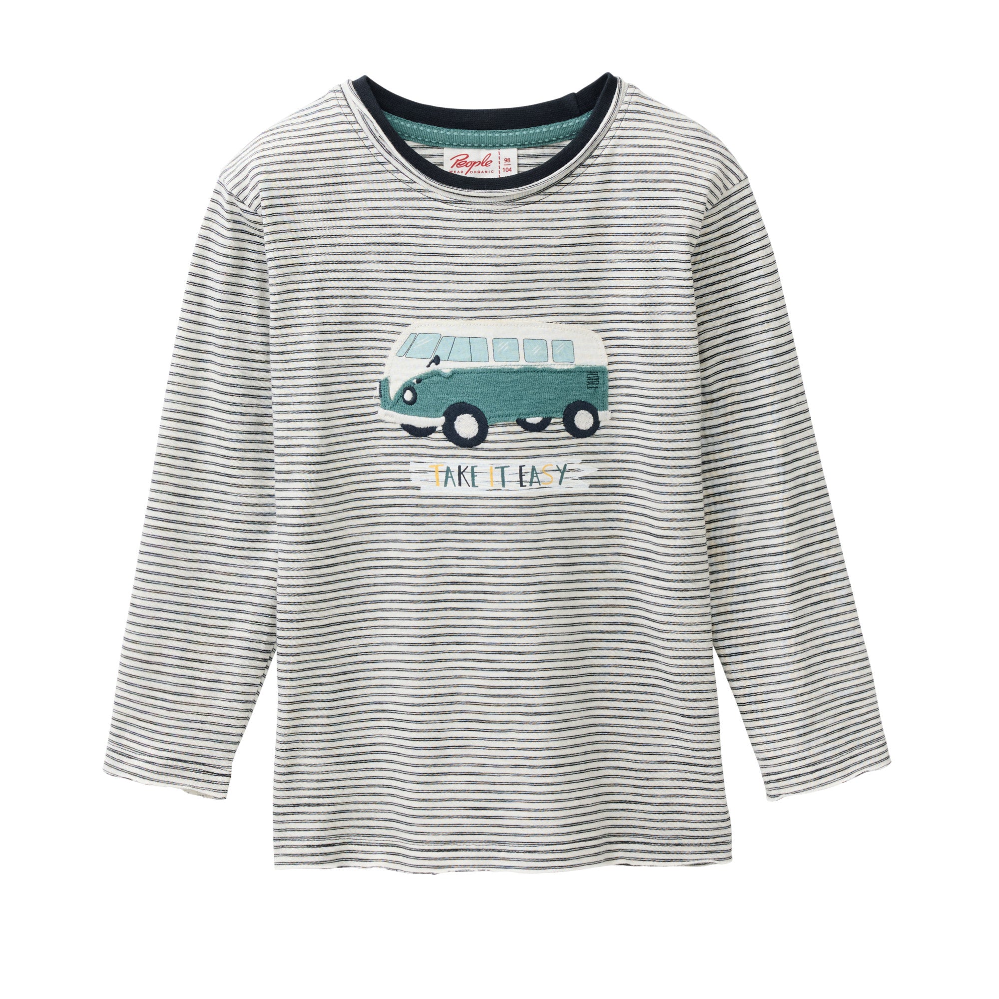 Take it easy! Kein Problem, denn dieses Shirt mit feinem Ringel aus lässig leichtem Slub Jersey Garn lässt sich super easy kombinieren und macht mit der Bus Applikation Lust darauf, die Welt zu entdecken.