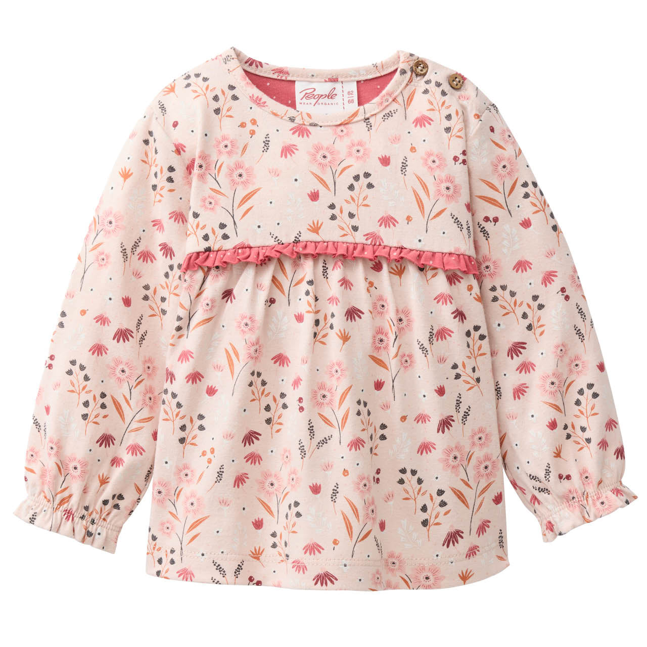 Ein Traum aus Blüten und Rüschen! Mehr Romantik geht nicht. Und mehr Bewegungsfreiheit auch nicht. Dieses Shirt aus ägyptischer Bio-Baumwolle ist so angenehm weich und weit, dass es jede Bewegung mitmacht. Mit kontrastfarbener Rüsche auf Brusthöhe und Kokosknöpfen an der Schulter für leichtes An- und Ausziehen.