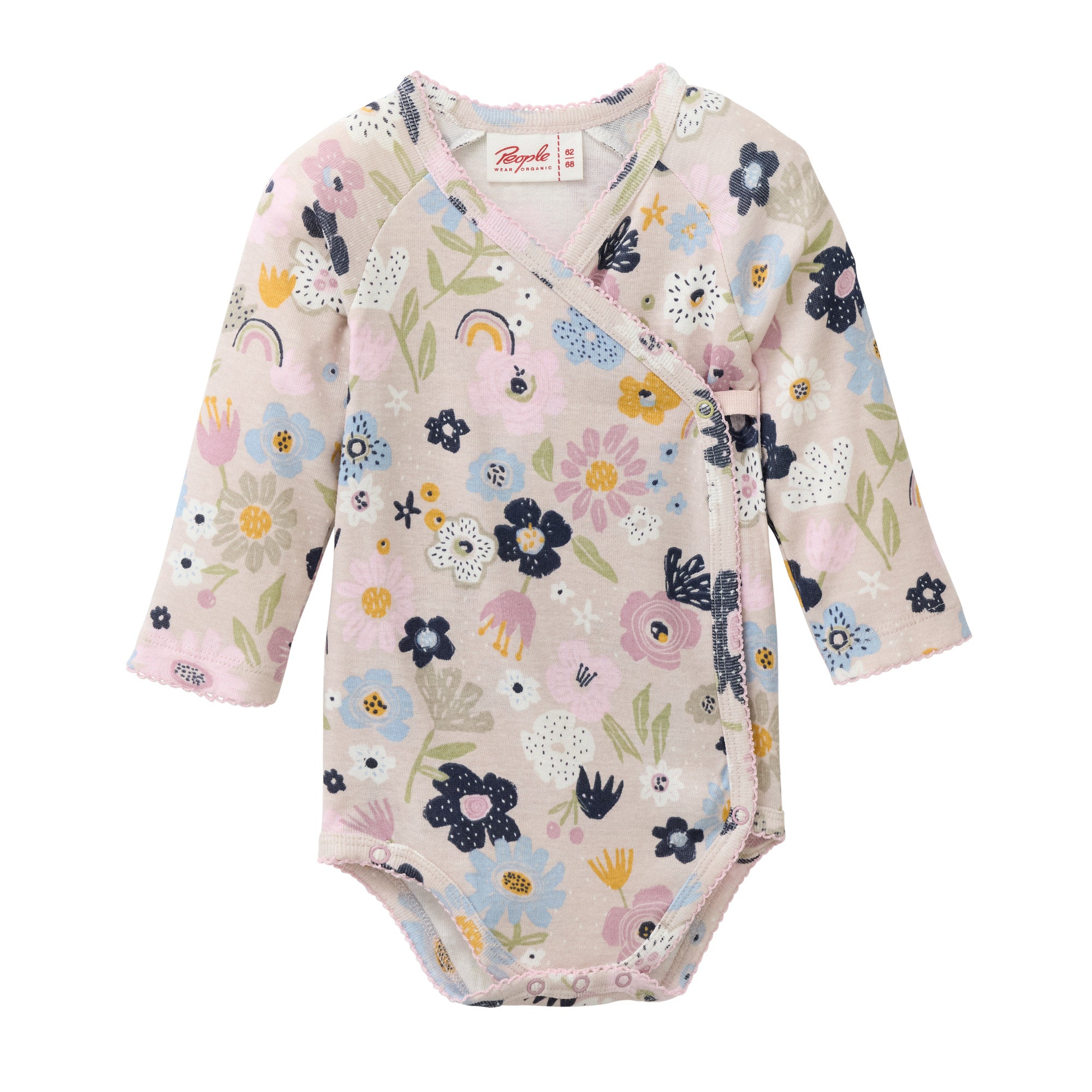 People wear organic Langarm-Wickelbody GOTS - blassrosa AOP bunte Blüten