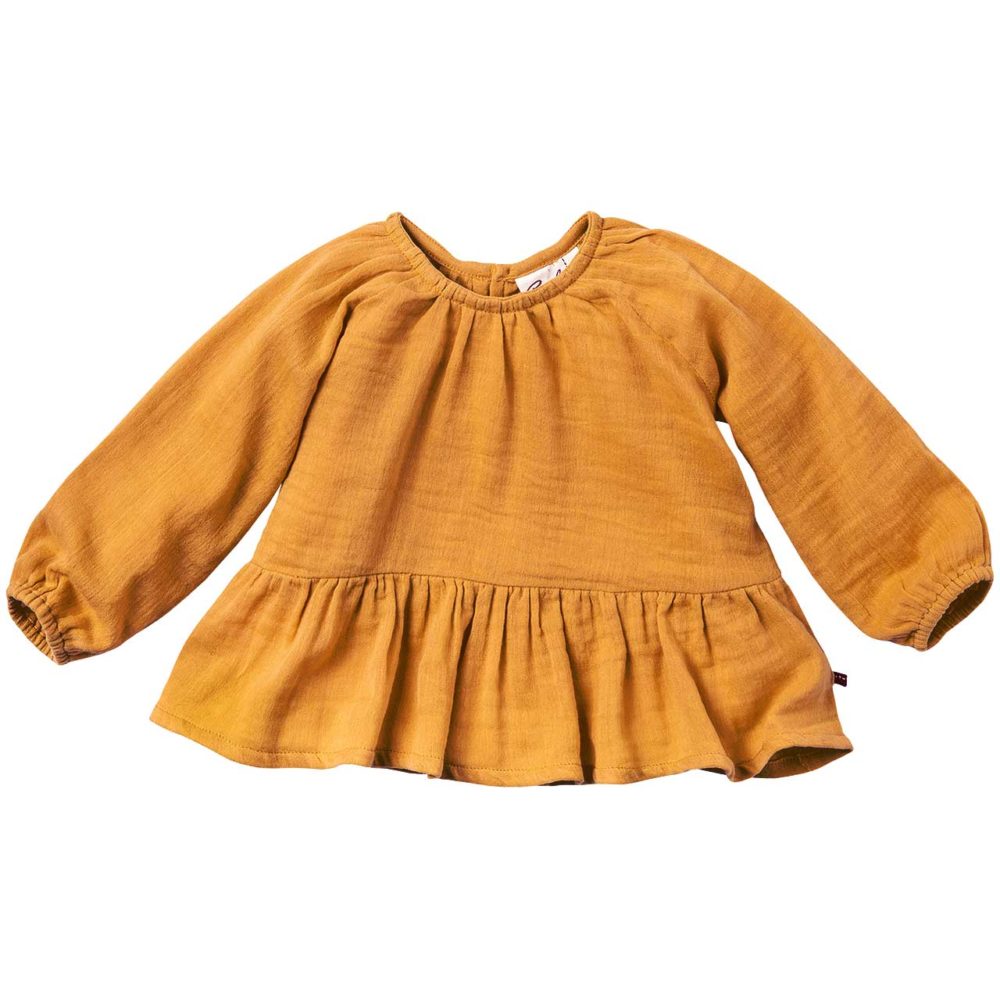 Liebliches Bio Langarmshirt mit luftigem Crinkle Look aus Musselin für Babys und Kleinkinder von people aus atmungsaktiver 100% Biobaumwolle.