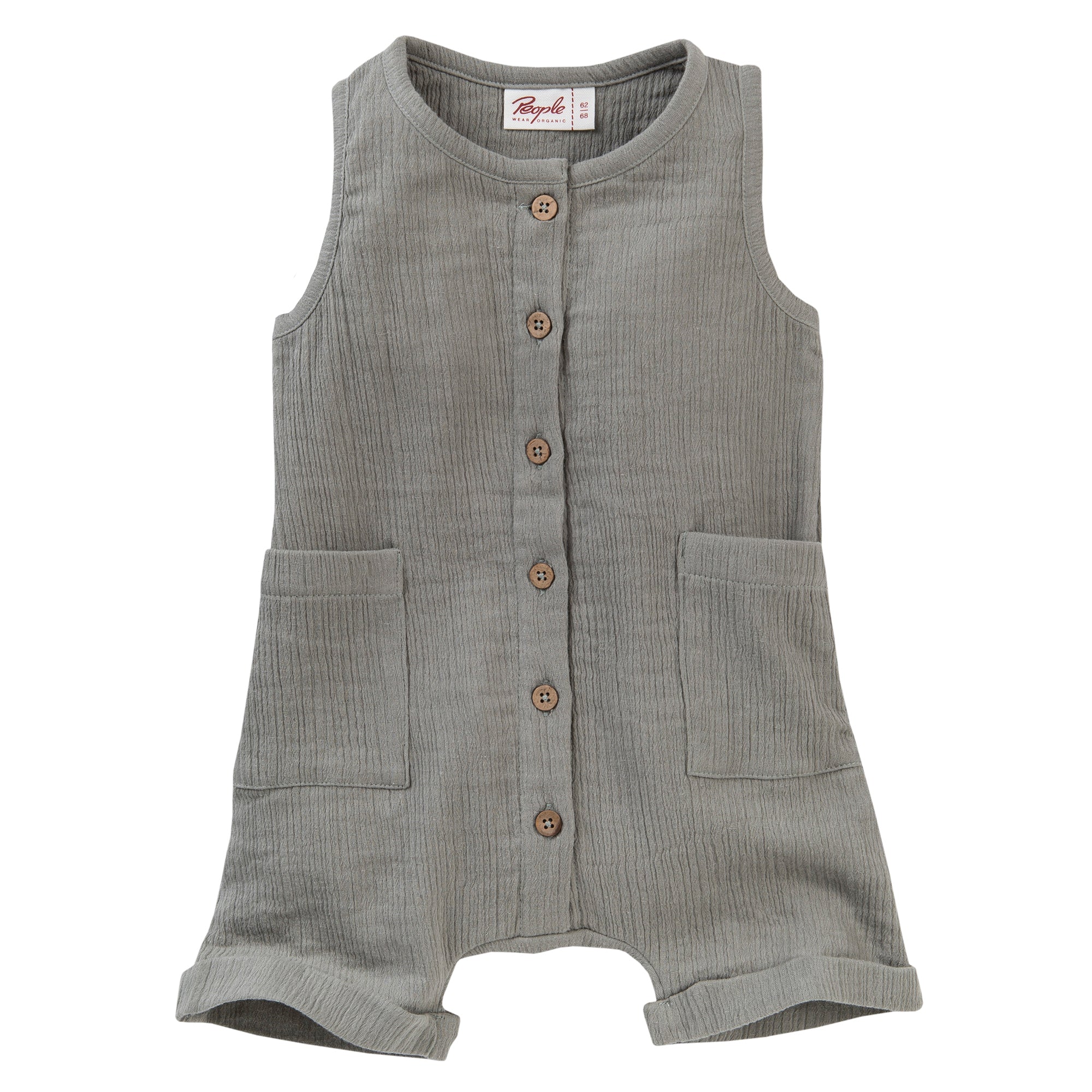 Süßer Bio Strampler in kurz mit luftigem Crinkle Look aus Musselin für Babys und Kleinkinder von people aus atmungsaktiver 100% Biobaumwolle.