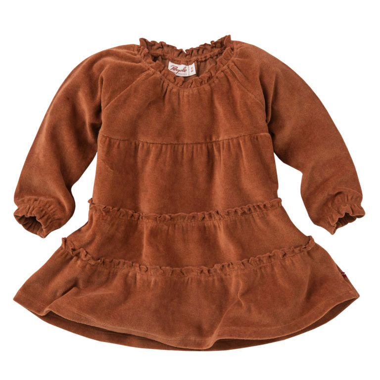 Einfach perfekt ist dieses gerüschte Kleid aus weichem Nicki-Stoff aus 100% Biobaumwolle aus biologisch-dynamischer Landwirtschaft von people wear organic.