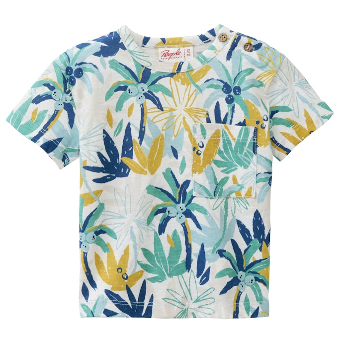 Dieses People wear organic Kurzarm-Shirt mit AOP Palmen aus Bio Baumwolle hat eine aufgesetzte Brusttasche.
