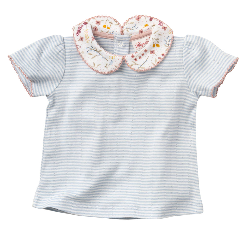 People wear organic T-Shirt mit Kragen hellblau geringelt