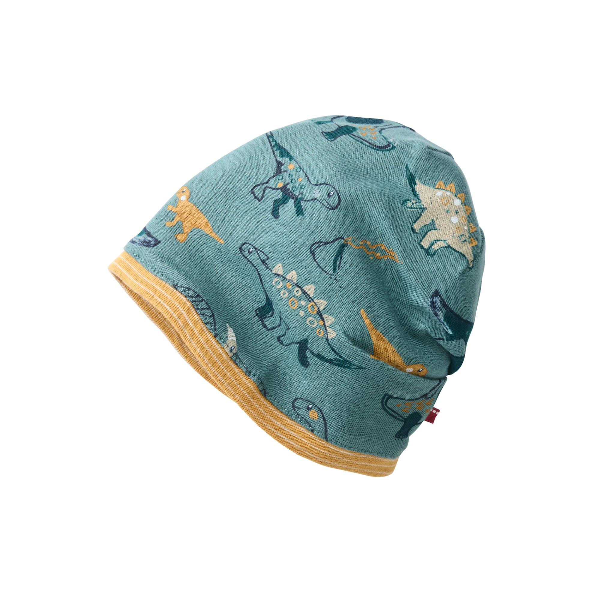 People wear organic Wendemütze GOTS - eukalyptus AOP Dinosaurier