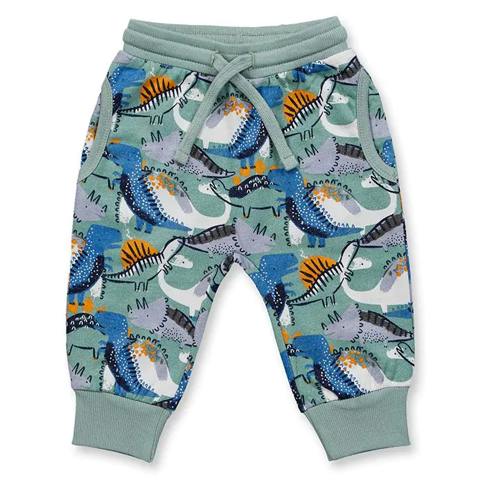 Sense Organics Baby Sweathose NEVIN - Dino Druck auf salbeigrün