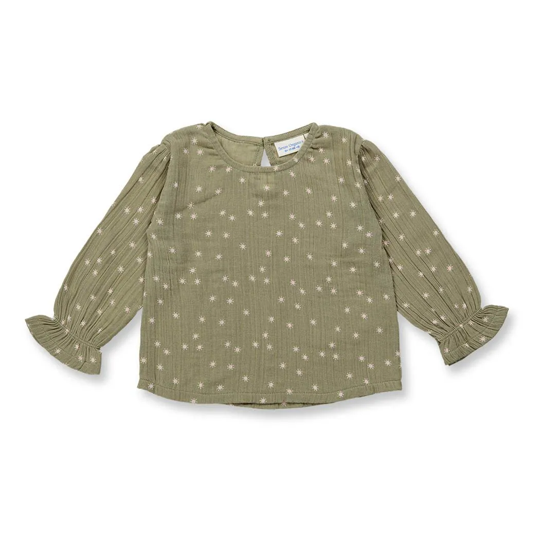 Sense Organics Mädchenbluse LOBA - schilfgrün mit Sonnendruck