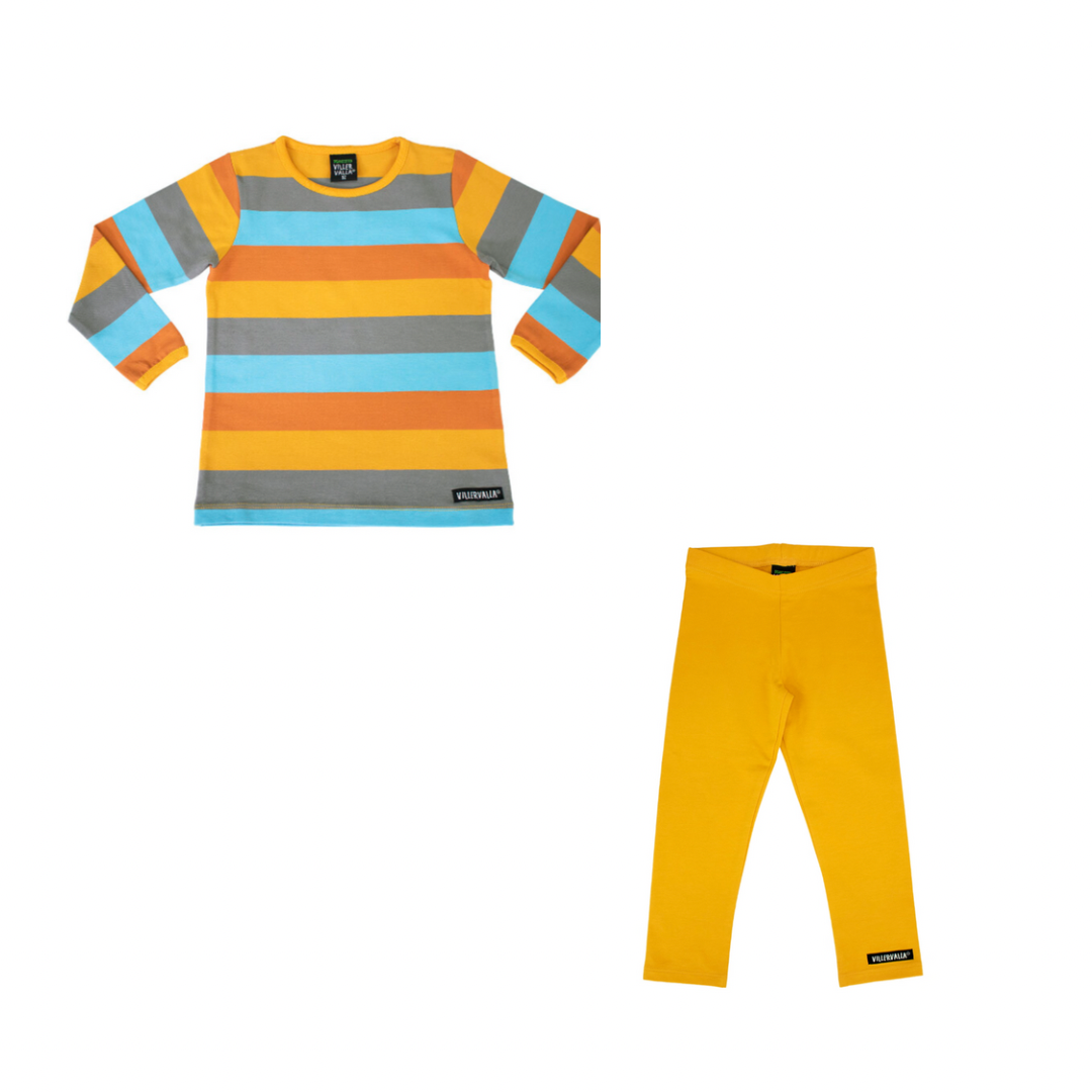 Villervalla Langarmshirt Multistripe beijing mit Leggings saffron