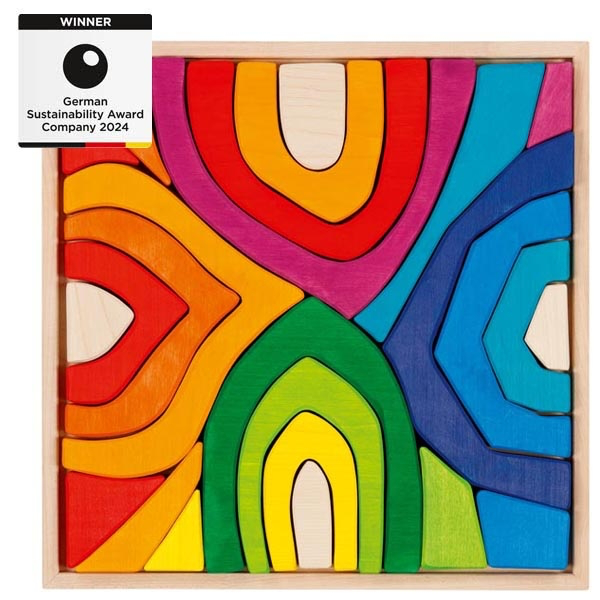 Aus Ahornholz gefertigt und Made in Europe: die liebevoll gestalteten Bausteine in Regenbogen-Farben repräsentieren die vier Jahreszeiten und laden ein zum phantasievollen freien Spielen.