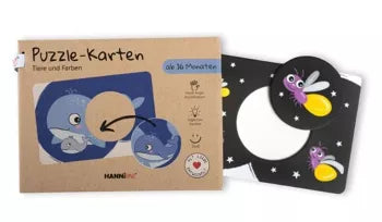 HANNIline Puzzle-Karten für Kleinkinder ab 16 Monaten | Tiere & Farben | mit Steckspiel