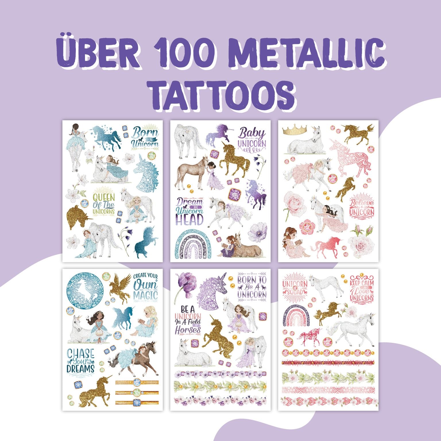 Papierdrachen 100 Glitzer-Kindertattoos – Einhörner