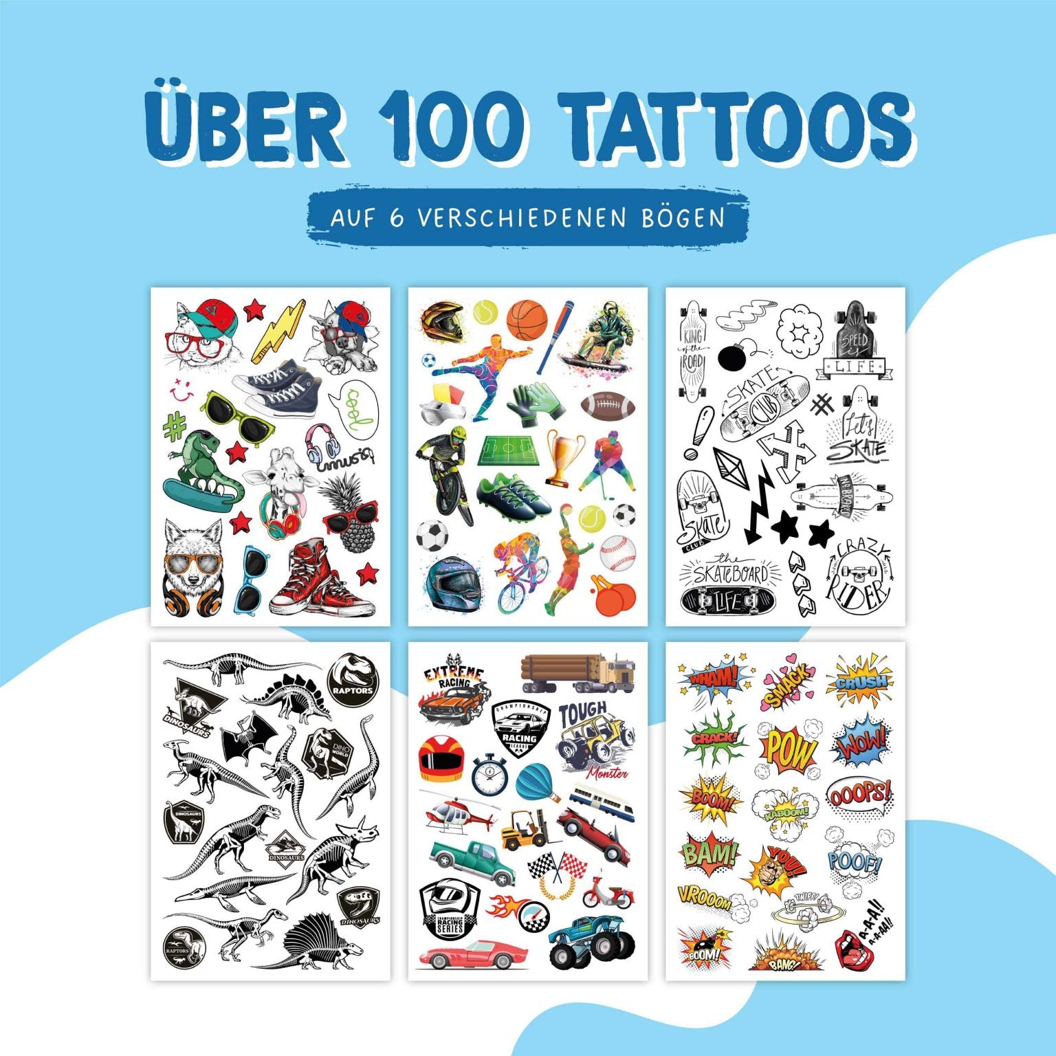- 6 Bögen (Größe DIN A6) mit temporären Tattoos für Kinder – kindgerechte Designs