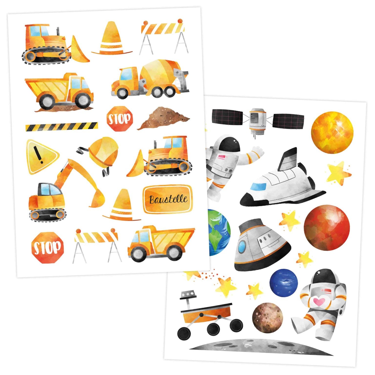 - 6 Bögen (Größe DIN A6) mit temporären Tattoos für Kinder – kindgerechte Designs