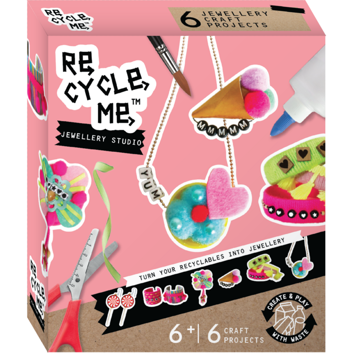 Wie cool ist es, eigenen Schmuck herzustellen! Re-Cycle-Me liefert die Komponenten in dieser Box, um diese coolen Accessoires herzustellen. Mit diesen Komponenten und Ihrem selbst gesammelten Abfall stellen Sie diesen wunderschönen Schmuck her. Ebenfalls im Lieferumfang enthalten ist eine übersichtliche Anleitung, die Schritt für Schritt mit Bildern erklärt, wie das Zubehör hergestellt wird.
