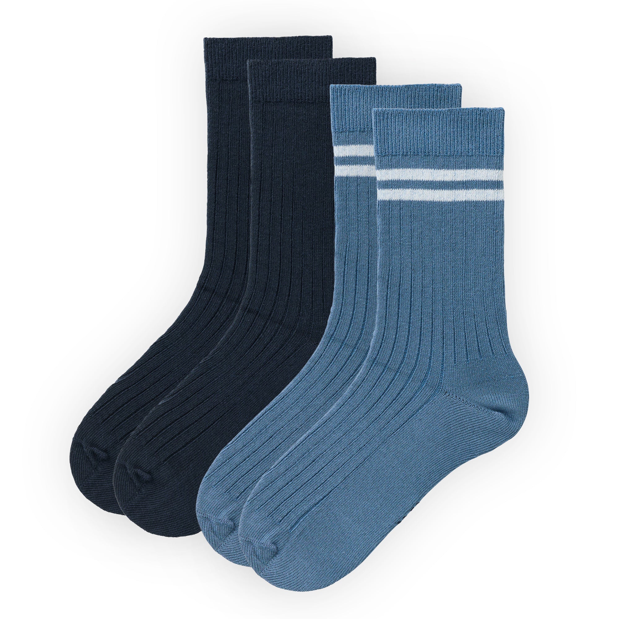 Ein perfektes Duo, für alle, die es trendy, aber basic mögen. Kombinationsstarke Farben treffen auf modernen Rippstrick und Farbringel am Bündchen. Und für alle, die es manchmal ganz schlicht mögen, ist ein Sockenpaar ganz in uni gehalten.