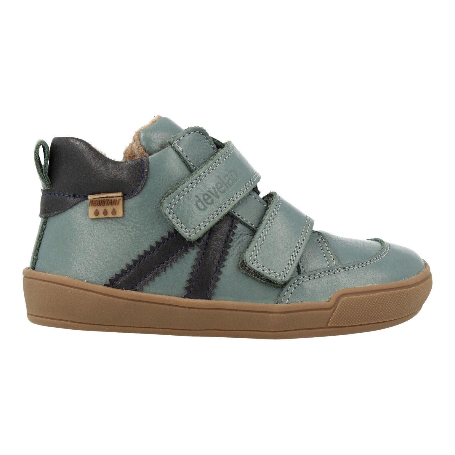 Die schönen Barfußschuhe von develab sind aus einem weichem Leder und Veloursleder als Obermaterial und Wollfleece als Innenfutter. Wie alle Barfußschuhe haben sie keine Fersensprengung und kein Fußbett.