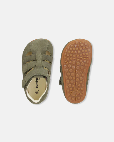 Die Sandale hat eine dünne, flexible Gummisohle, die es dem Kind ermöglicht, sich frei zu bewegen, während die feste Fersenkappe für einen stabilen Halt am Fuß sorgt. Durch diese Konstruktion werden kleine Füße optimal gestützt, was ideal ist, wenn Ihr Kind das Stehen und selbständige Bewegen übt.