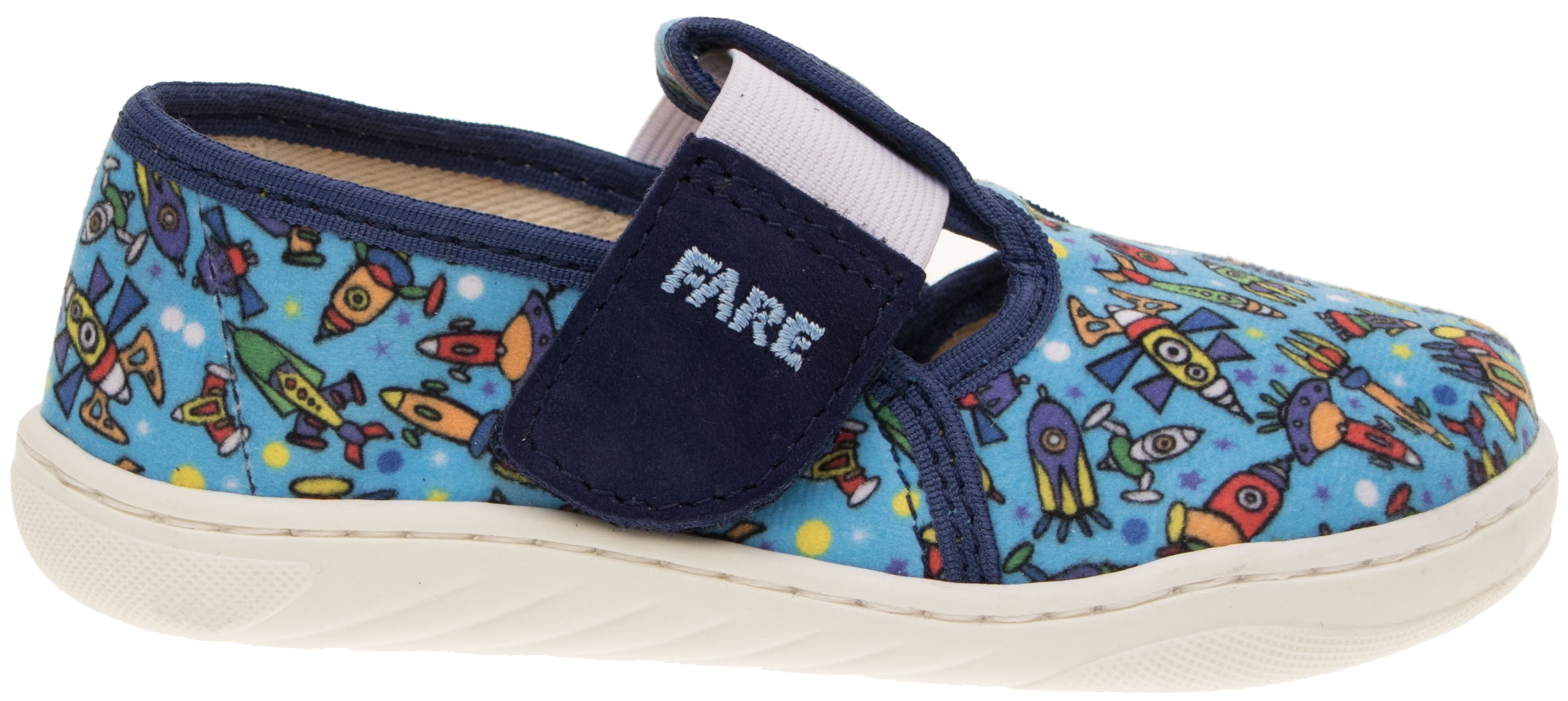 Fare Bare Wide Hausschuhe Slipper Klett hellblau Rakete