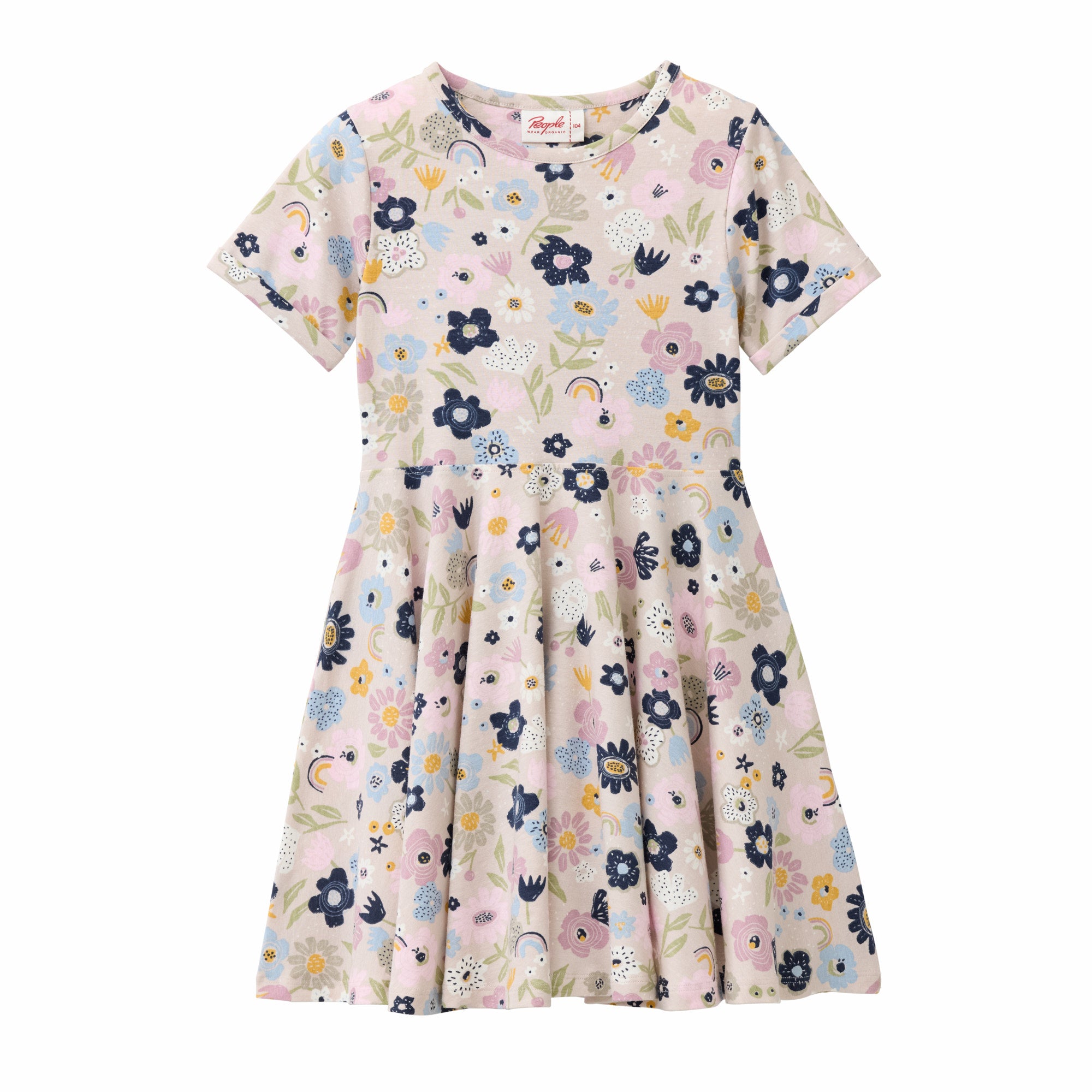 People wear organic Kurzarm-Kleid GOTS - blassrosa AOP bunte Blüten