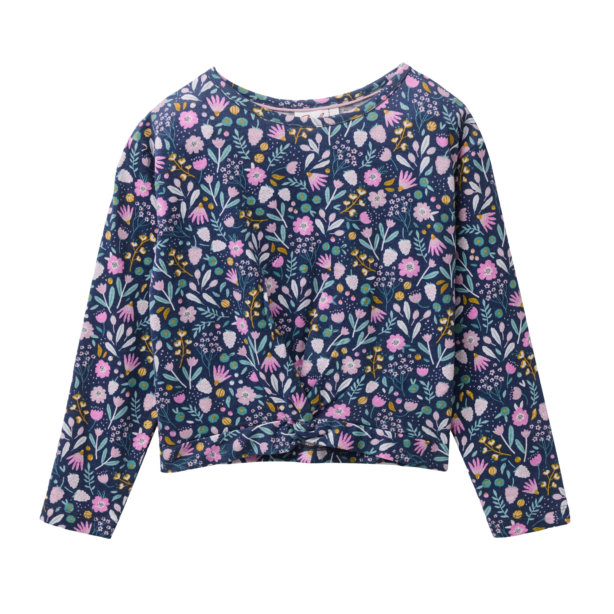Ein magisch schöner Blumendruck. Zum Tag- und Nachtträumen. Die innen und außen angerauhte Bio-Baumwolle macht nicht nur den Druck zum Traum, sondern fühlt sich auch noch kuschelweich auf der Haut an. Mit raffinierter Knotung vorne.