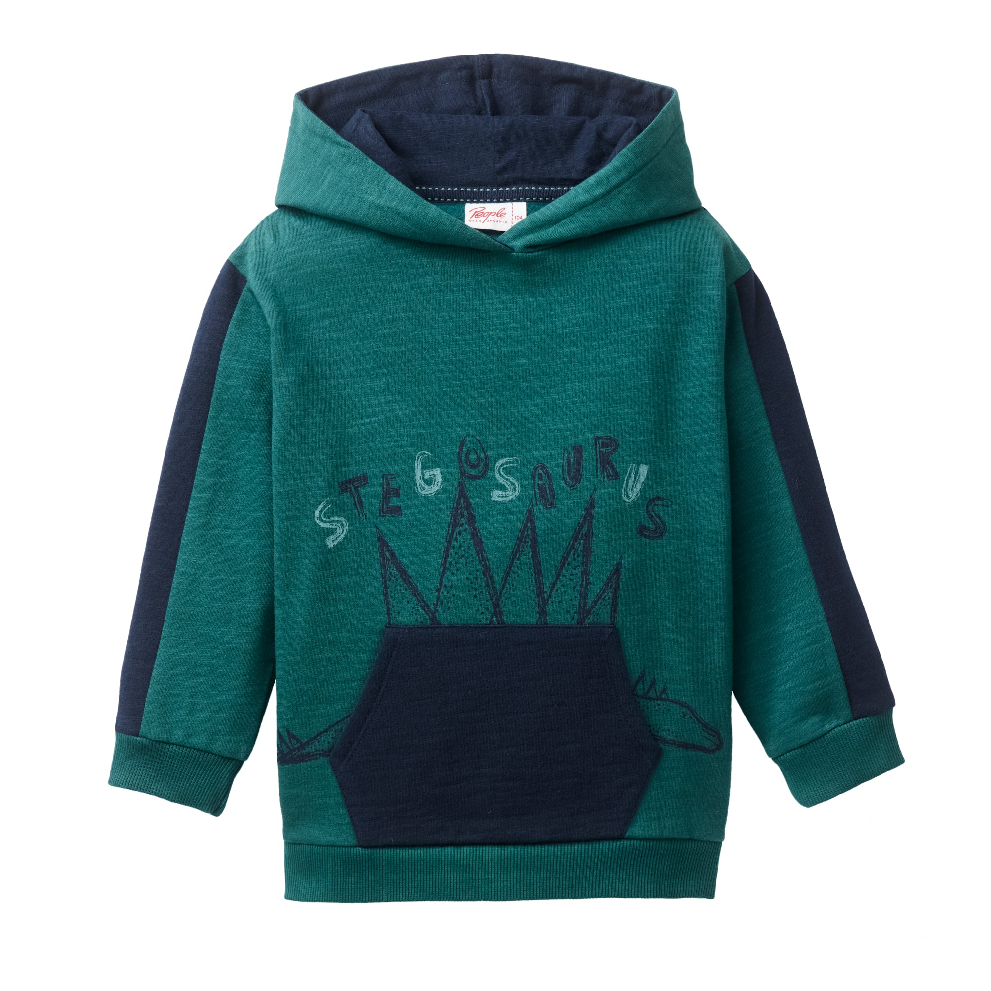 Cooler Sweat Hoodie, auf dem sich ein Stegosaurus als Känguruhtasche tarnt..oder ist es eher andersherum? Egal, Hauptsache, es macht Spaß! Mit Colourblock Optik und innen wunderbar weichem Slub Sweat.