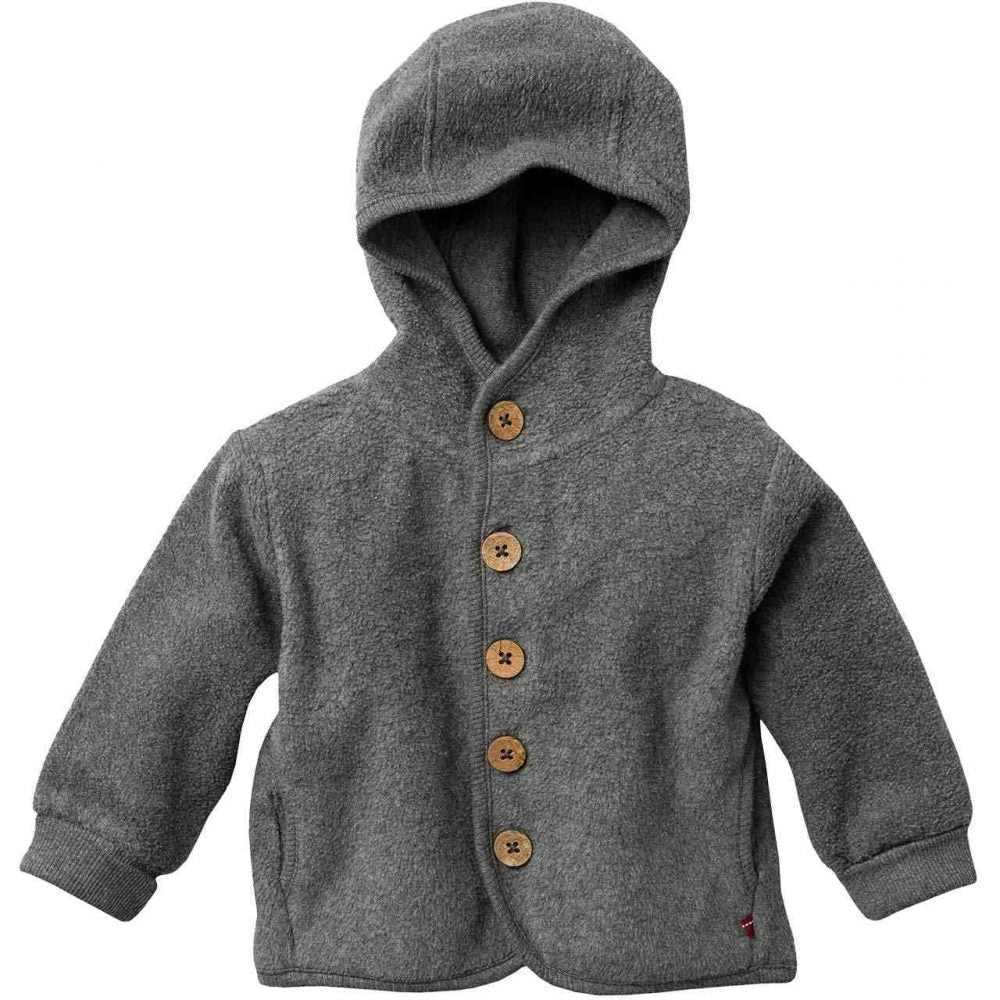 Durch die elastischen Bündchen kannn nichts hochrutschen. Mit Kapuze und seitlichen Eingrifftaschen. Bequem zu schließen durch große Knöpfe aus Schalen der Kokosnuss. Die Knöpfe sind naturbelassen und zu 100 % biologisch abbaubar.