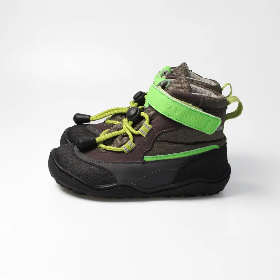 Der Landschildkröte-Halbstiefel ist aus robustem, veganem Textil in Velourslederoptik und synthetischen Materialien mit TEX-Membran gefertigt – wasserfest und langlebig. Der praktische Klett- und Schnellverschluss sorgt für eine optimale Passform, während die rutschfeste Barfußsohle Stabilität und Flexibilität garantiert. Reflektierende Details erhöhen die Sichtbarkeit bei schlechten Lichtverhältnissen. Dieser Halbstiefel vereint Funktionalität, Komfort und Nachhaltigkeit – perfekt für jedes Abenteuer im Freien!